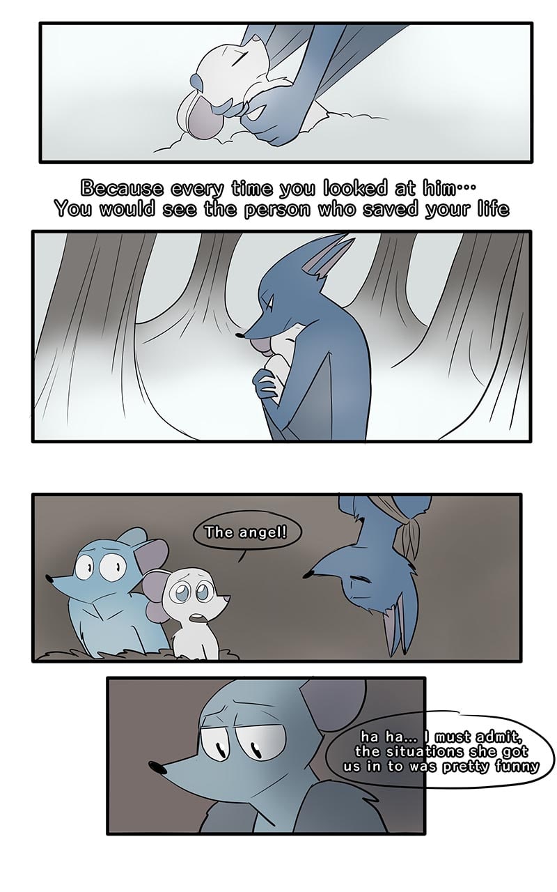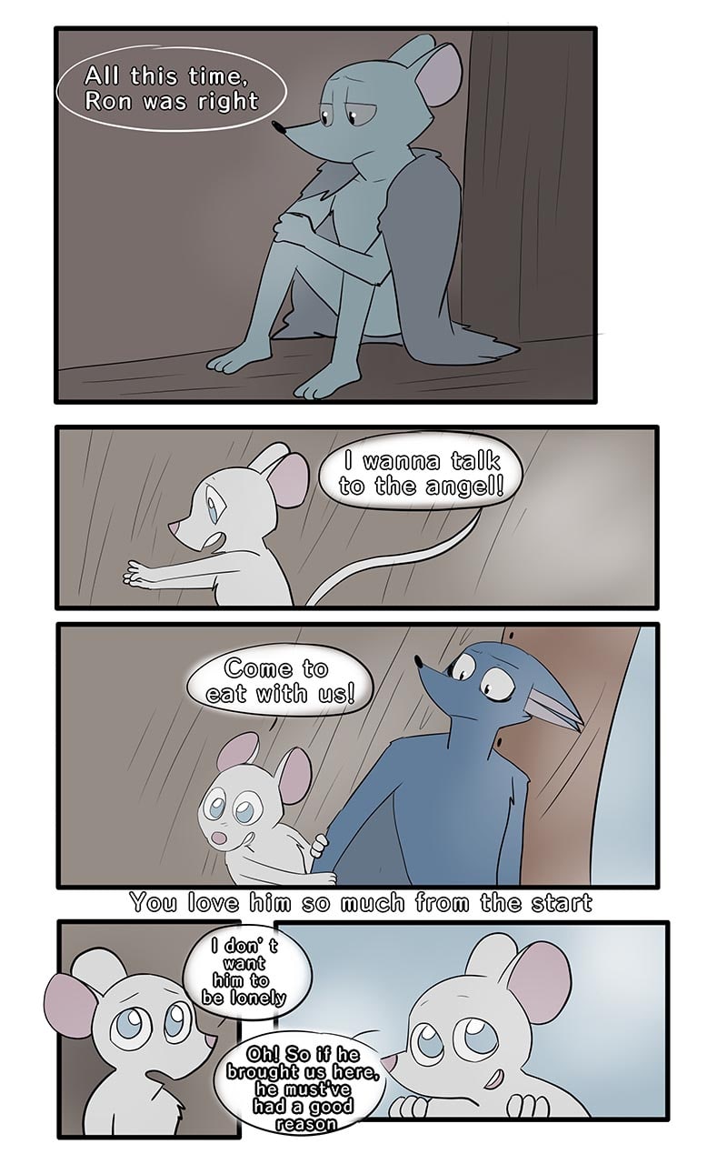 Montimer is a bat. He is a carnivore and a predator. Larry is a mouse, and he is nothing but prey. One day running through the forest, Larry is trapped by Montimer and is forced to raise a baby mouse in exchange for not taking her place as Montimer's dinner. But... is this bat telling the truth? Who is he? ..Maybe he's just an angel.