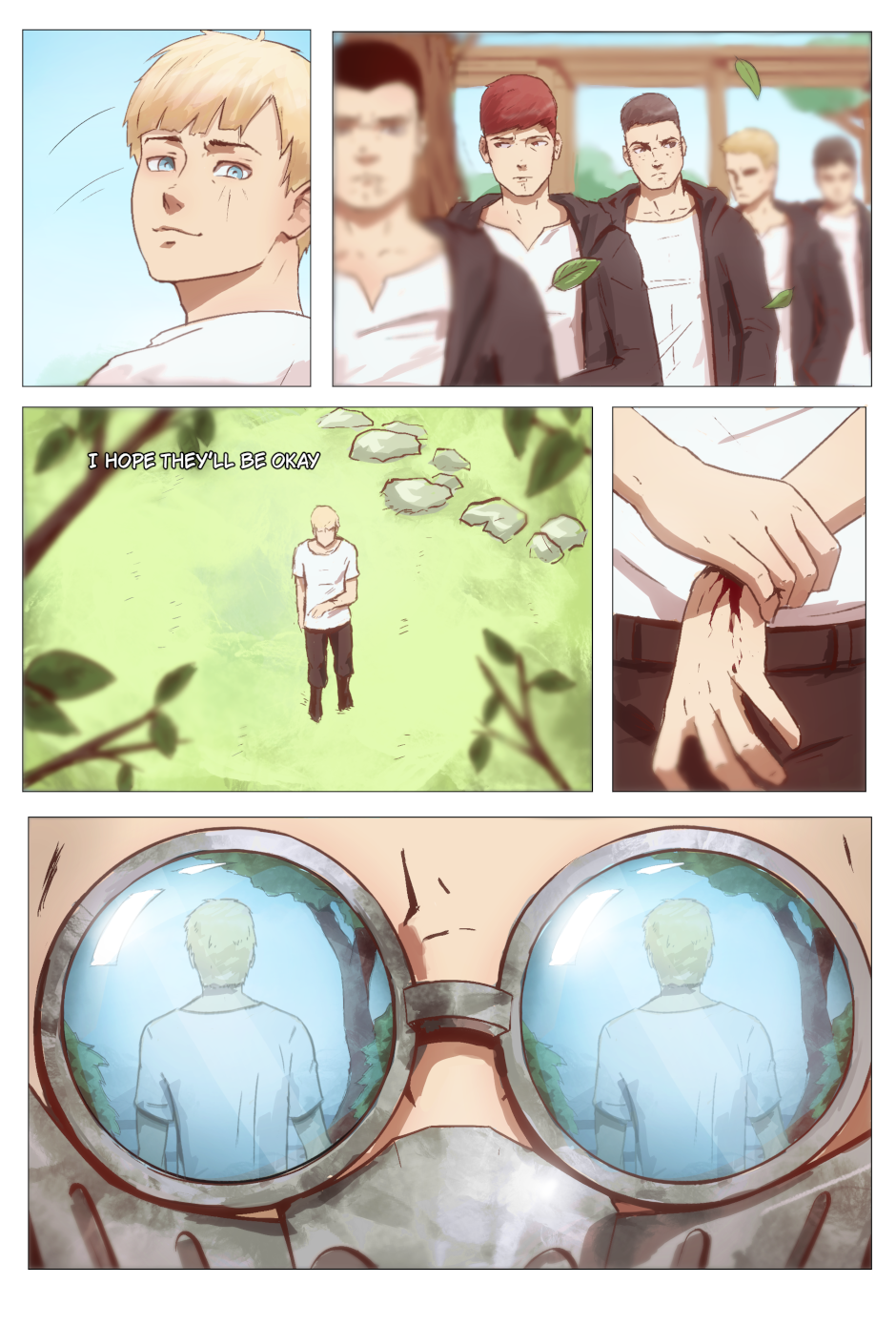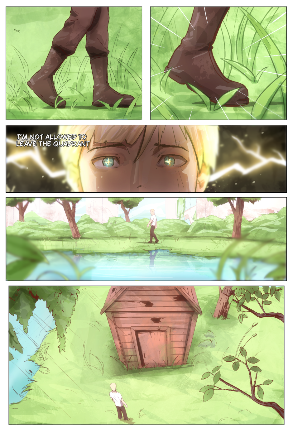 This is great! I love the writing so far, and I especially like the use of blurred elements in panels to create the sense of foreground, background and focus point. I can't wait for more!