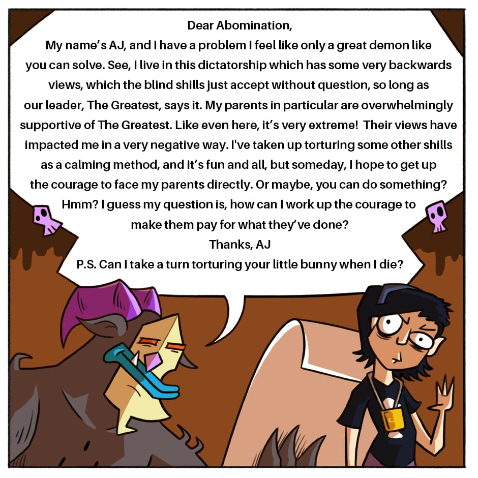 Are you a puny web comic character in need of unholy advice? Though your problems are meaningless and your death inevitable, I am here to help!