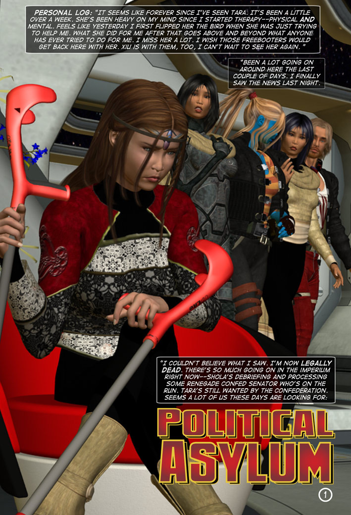 In This Issue: Ex Patriate Confederation Senator Hin’ath Ormedu files for political asylum with the Alpha Centaurian Tribunal. Her political career ruined by Chess’ convoluted plots, she has to begin a year of residence in any safe haven within the Imperium until she can begin rebuilding her life. Senator Ormedu recognizes Tara, and the moment the two begin comparing notes, an interesting alliance is formed.