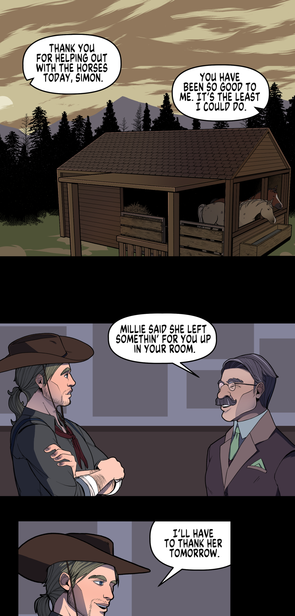 Simon is stranded in a small mountain town where he meets a young and fiery-haired lacemaker, Millicent. After seeing Millie disappear into the woods in the dark of night, he makes his way out to find her, but instead finds something much more sinister. Deep in the hollers of Appalachia, there are long forgotten gods, beasts, and people; and they’d like it to stay that way.