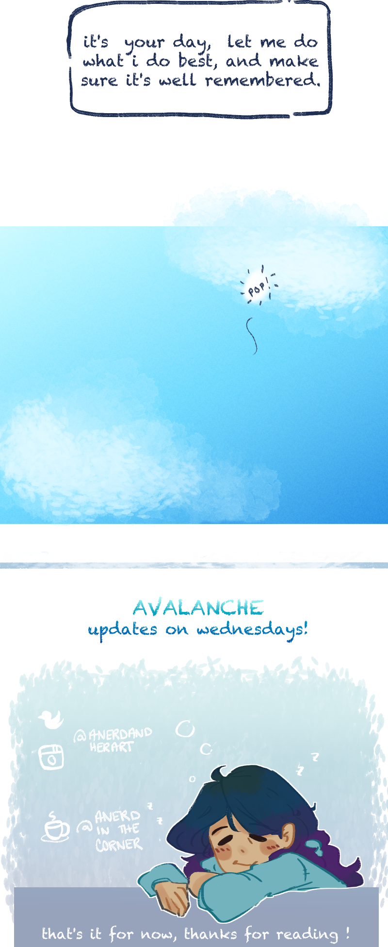 Things always fall into place; sometimes gently, like the first dust of snow, sometimes suddenly, with a force no one has time to prepare for. An avalanche you can't escape.