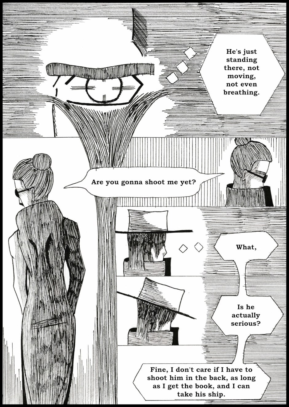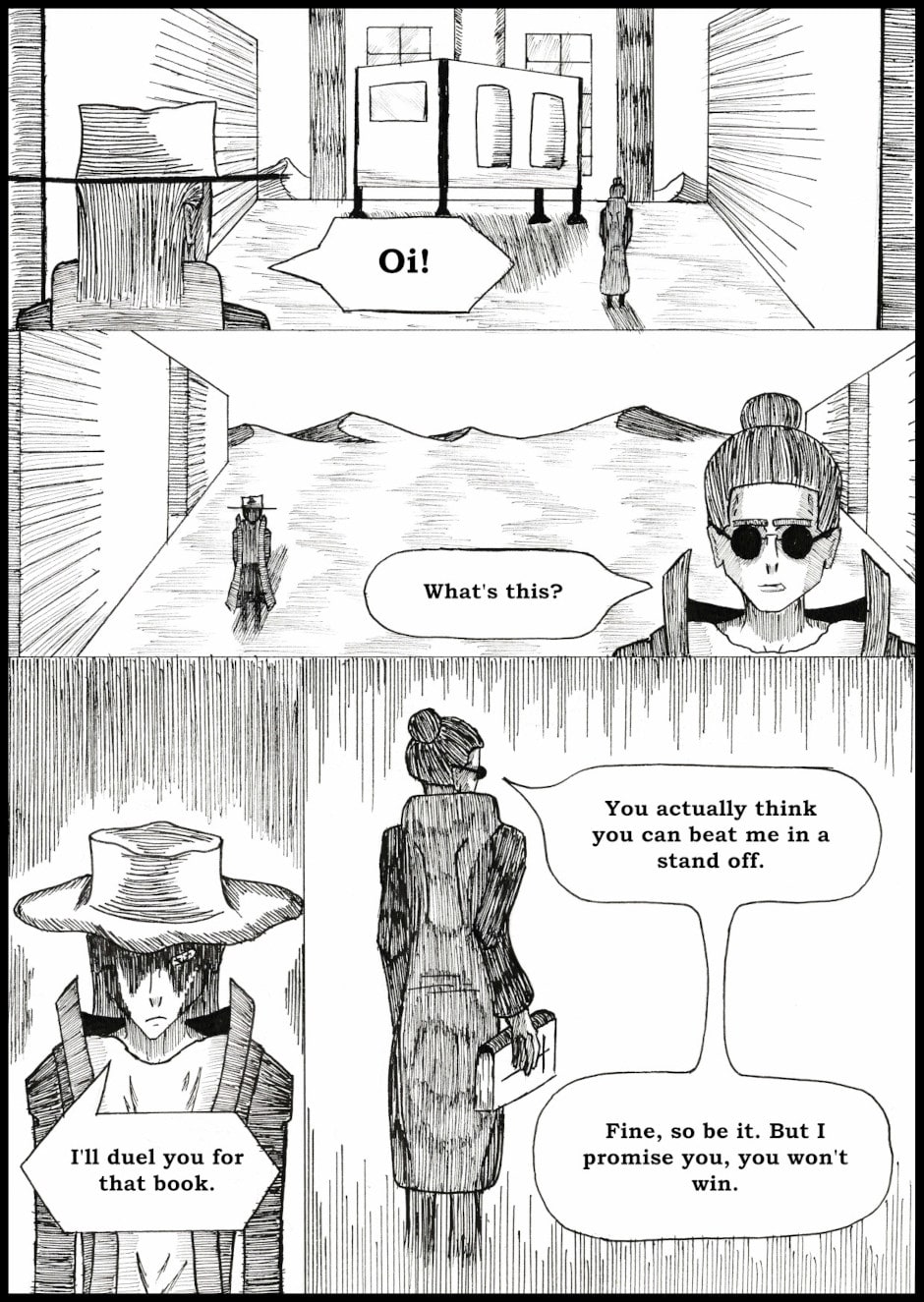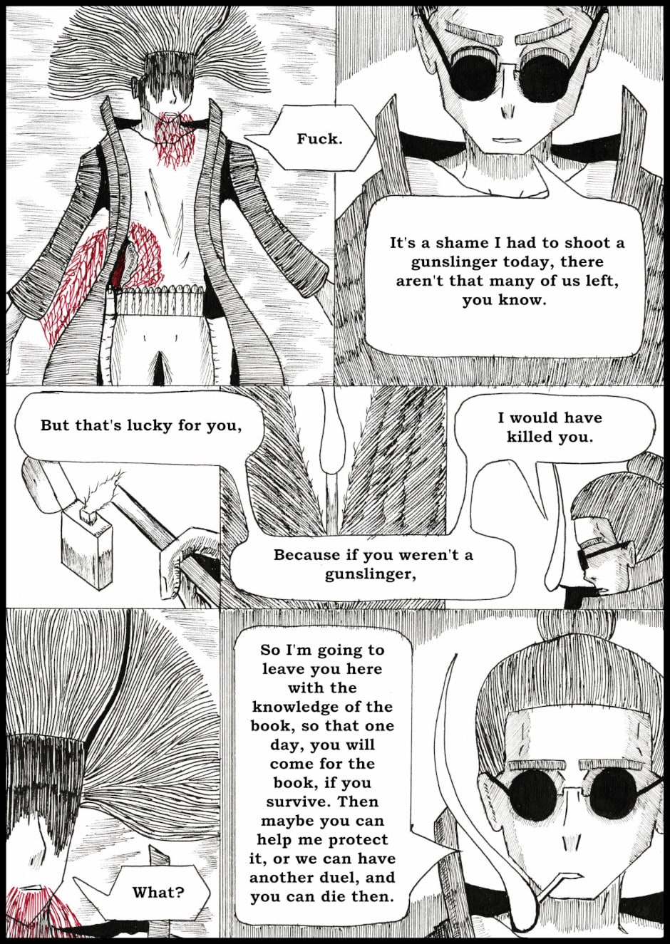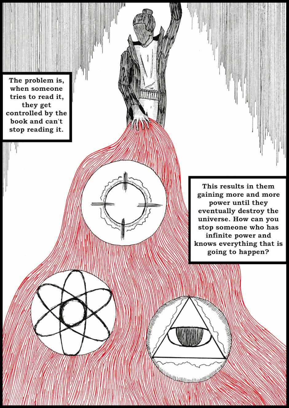 A stranded gunslinger is on a journey to get off-world, but encounters a strange book of heresy that contains all things that should not be known for the sake of the universe.