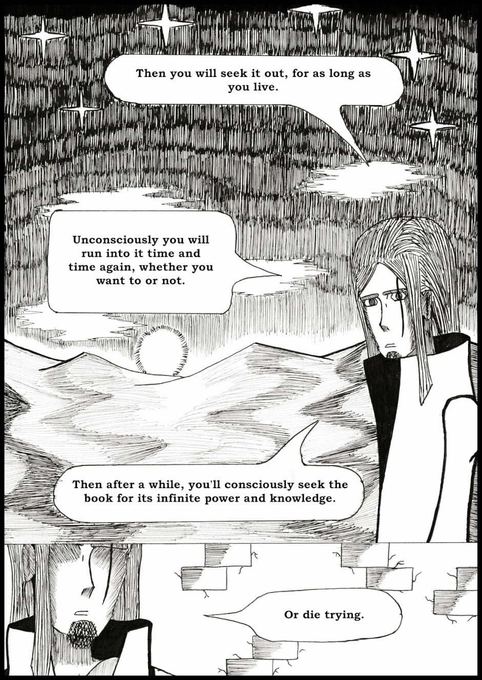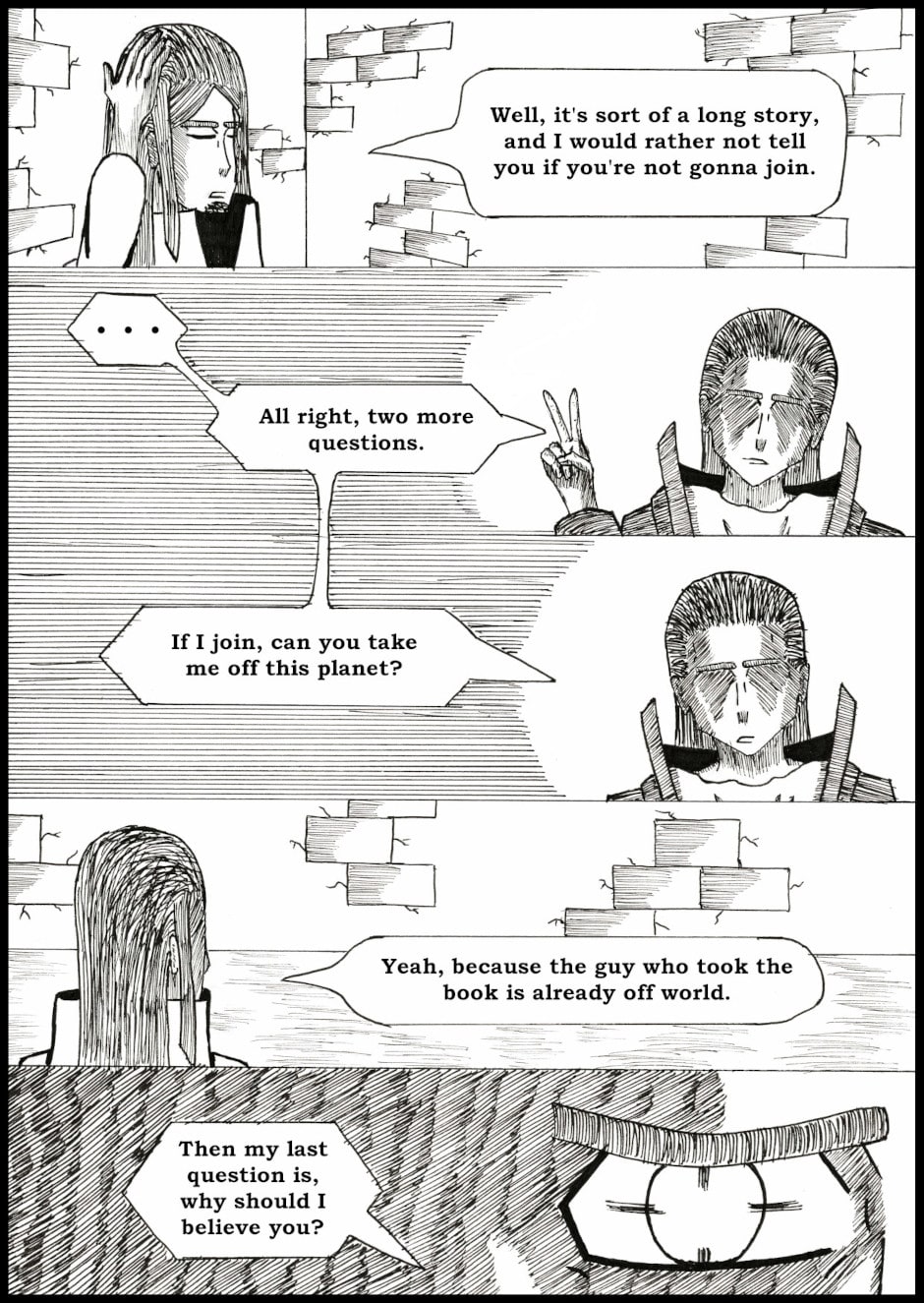 A stranded gunslinger is on a journey to get off-world, but encounters a strange book of heresy that contains all things that should not be known for the sake of the universe.