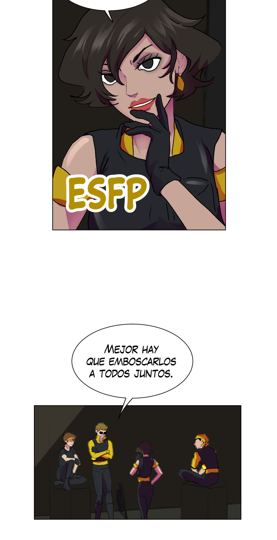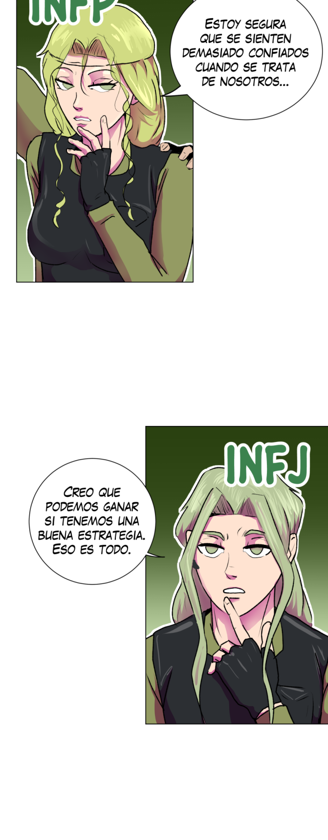 "El MBTI enfrentado en una batalla campal por la victoria y la dignidad (si es que aún les queda) de su analista, diplomática, centinela y exploradora mentecita ."