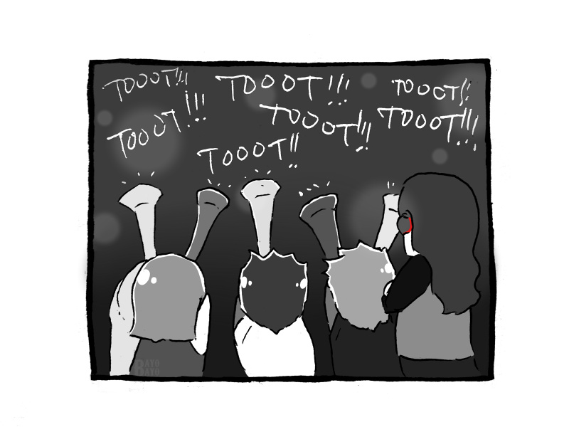 Kids and their horns. Honestly. At least it's safer than the fireworks ^^ http://www.bayobayo.tumblr.com/tagged/my+art http://www.bayobayo.deviantart.com http://www.facebook.com/bb.doodledump