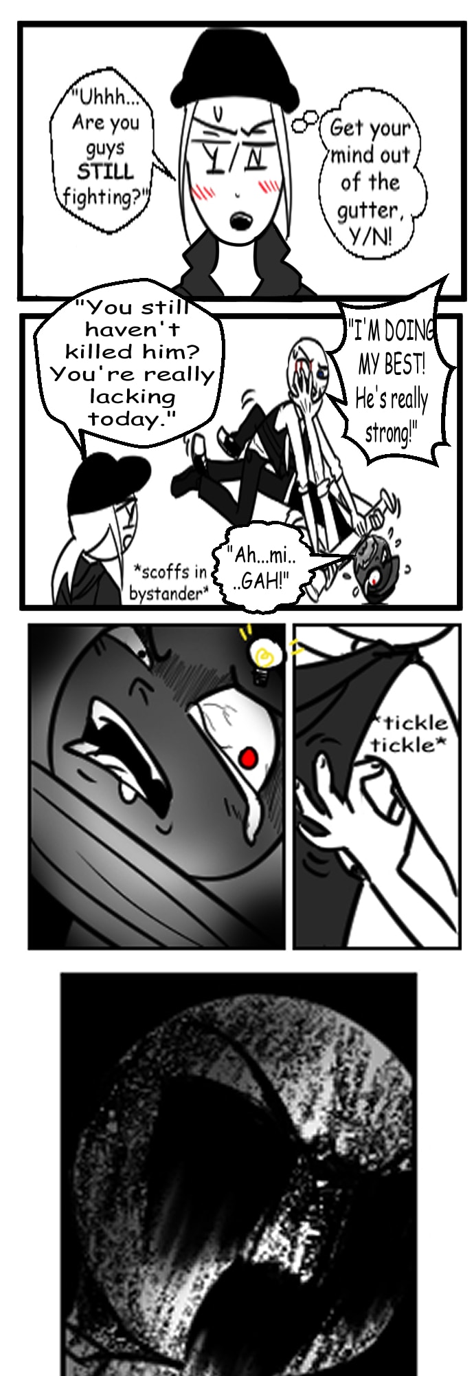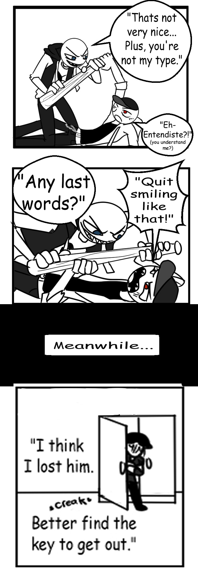 A fan-made crossover comic based on the visual novel/game "Your Boyfriend" by InvertedMindInc, and Charming Agency's mobile game, "Angry Boy Pedro and his Friend." Peter(your boyfriend) and Pedro(the angry boy) face off for their prized possession, [Your Name].