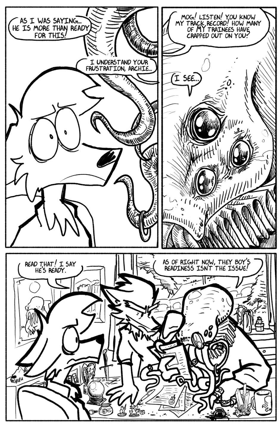 Zaan and Arch arrive at the academy. Zaan has never seen a Depth Dweller.
