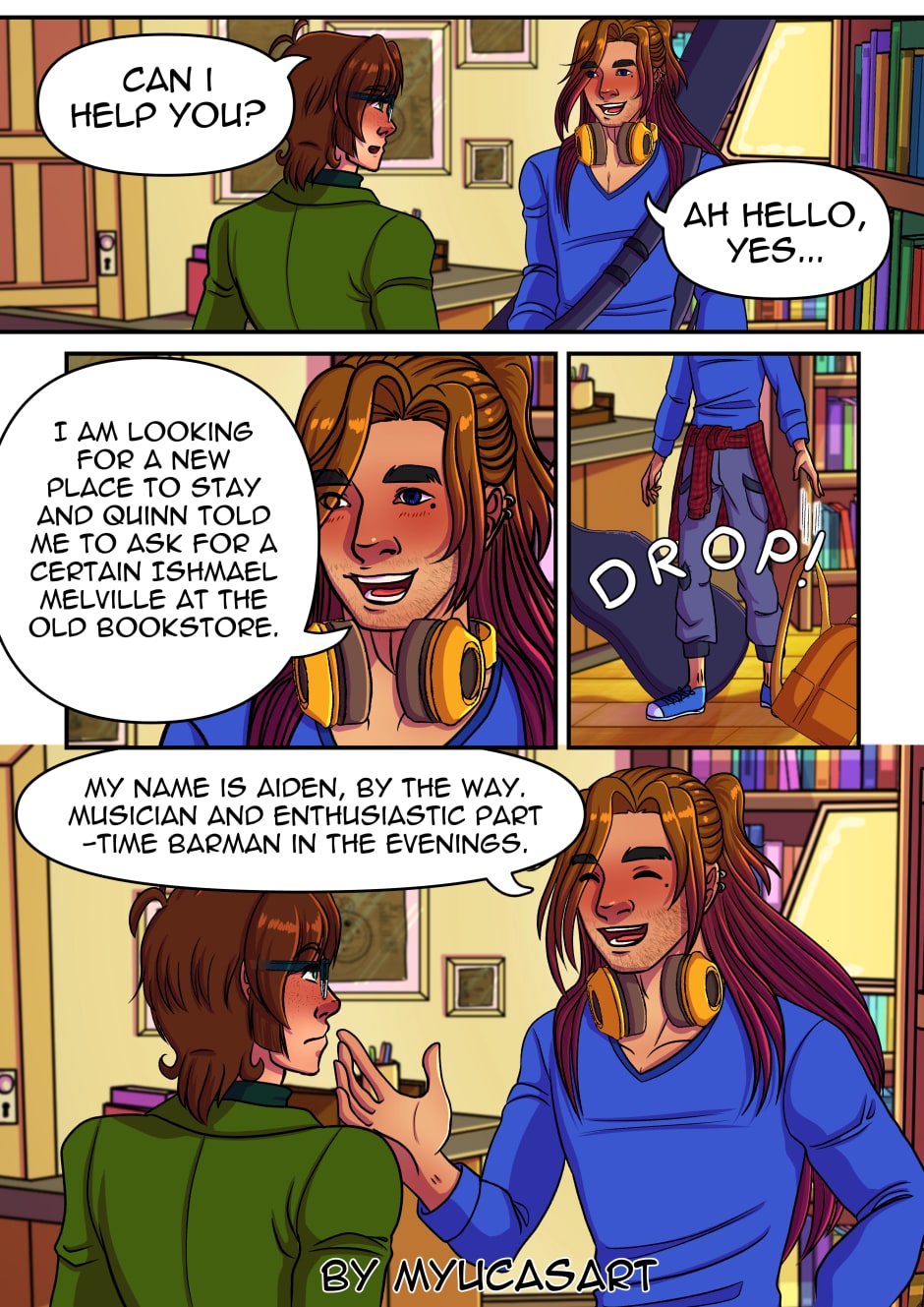 After his grandfather´s death , Ishmael Melville inehrits his old bookshop and a bunch of debts with it. To pay these he offers a room in his apartment for rent, and Aiden, a young extroverted musicer moves in with him. As an introvert Ishmael has problems with most people but with Aiden it is like love at first sight. And his cat Archimedes likes Aiden as well - that counts for something, right? So if the two could just stop being oblivious everything would be fine.