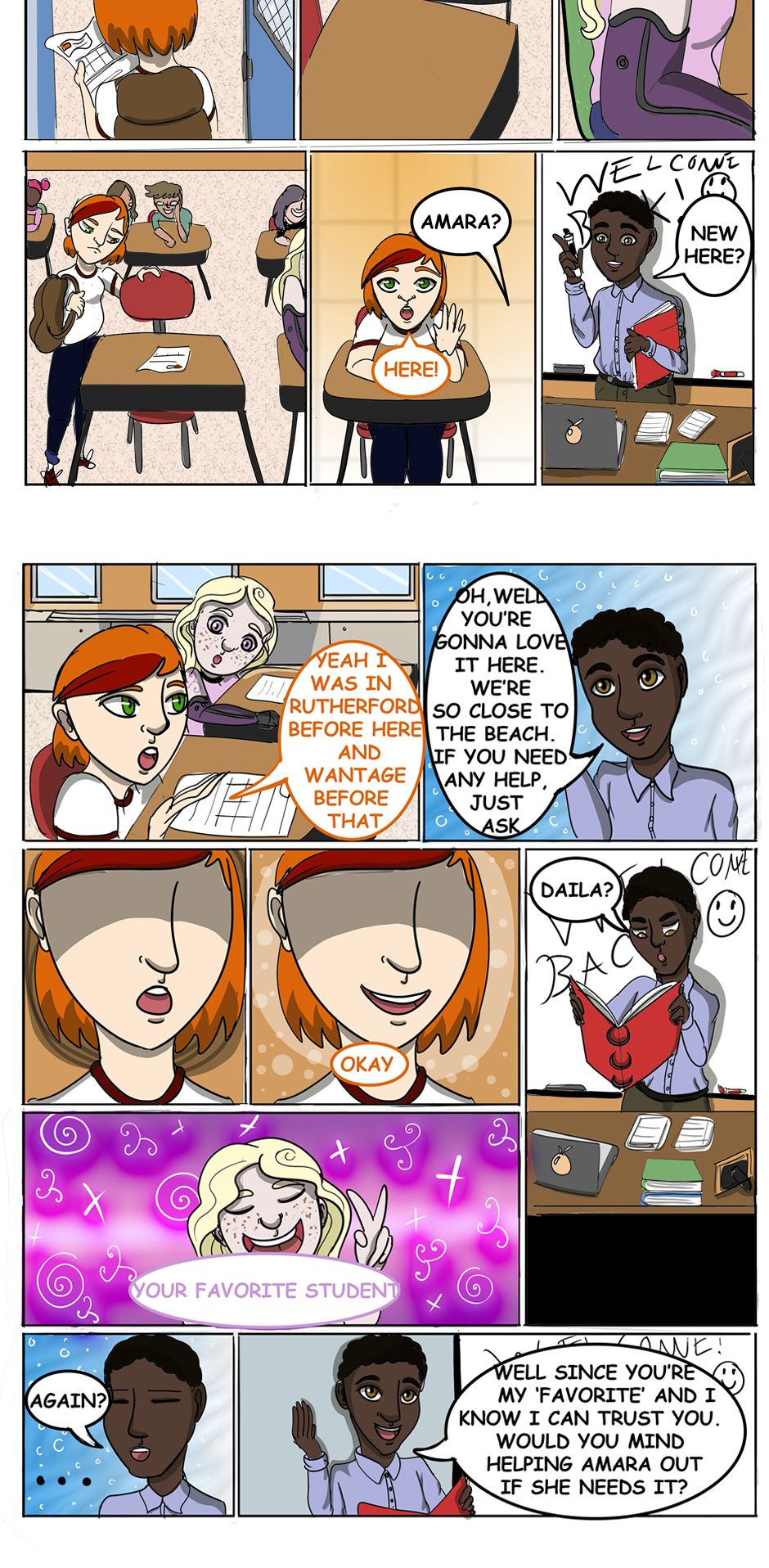 Aha! She has different colored hair so she must be the main character