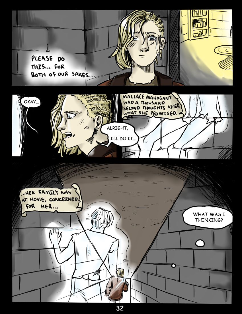 Mallace Mahogany travels to a mountain in The Dented Hills in search of her old friend, only to find herself trapped in the home of an evil sorcerer. Questions are answered, and answers are questioned as secrets slowly unfold.