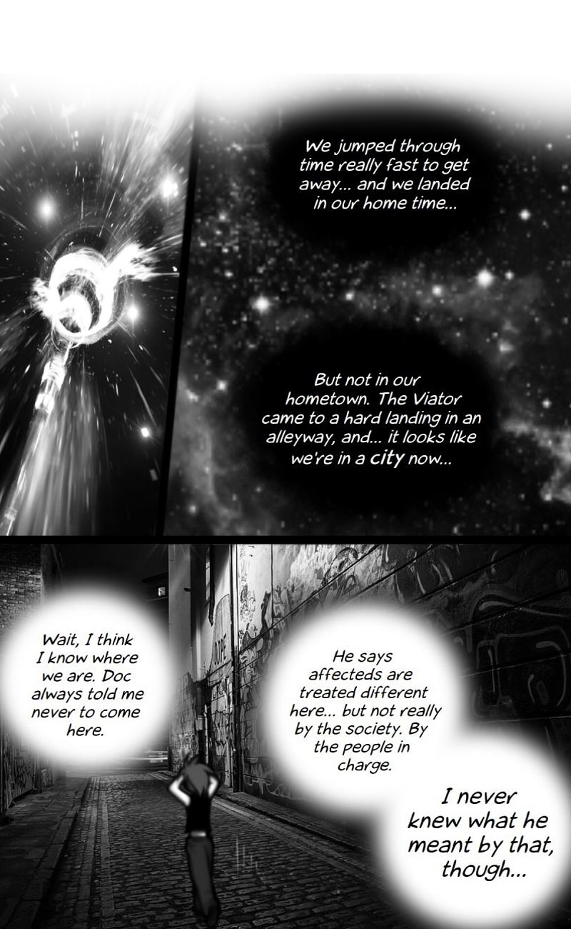 Wild pasts and dystopian futures! Taizela lives in a sci-fi & post-doomsday world. She and her adoptive father--an eccentric inventor named Doctor Jones--accidentally send the philosopher's stone into time, and now they've gotta find it before the timeline is ruined. But--they aren't the only ones after the stone, and shady entities from their own time are on the hunt as well.