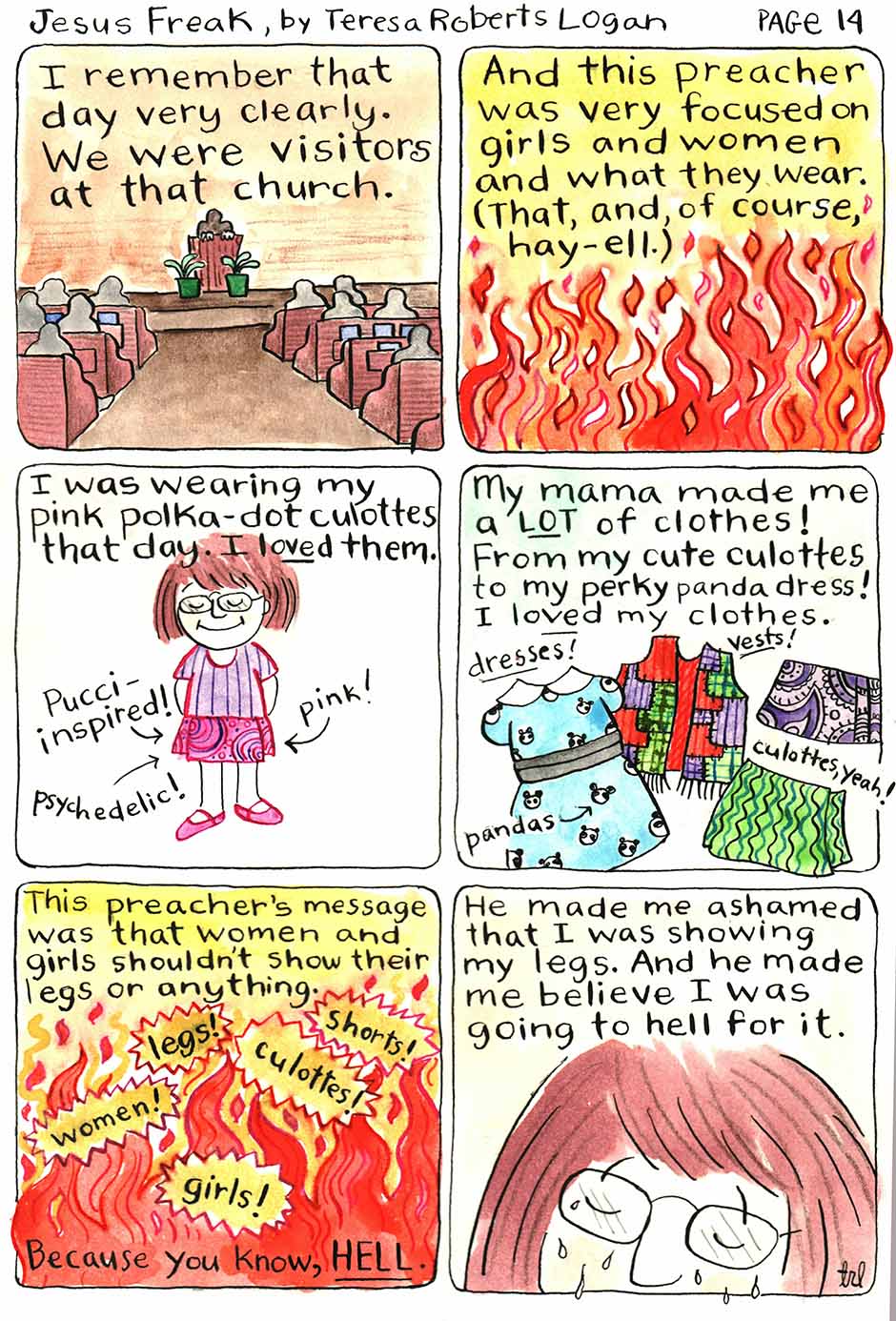 JESUS FREAK: LOSING MY RELIGION is about a funky journey, from THERE to HERE. It is the autobiography of Teresa Roberts Logan, (cartoonist, comic) about being raised Southern Baptist and all that entailed (Baptisms! Bad Preachers! Women can’t do stuff!!) and exploring her spirituality in a bigger way. She tells it in a funny, honest, and sometimes raw way, and hopes you'll keep reading it.