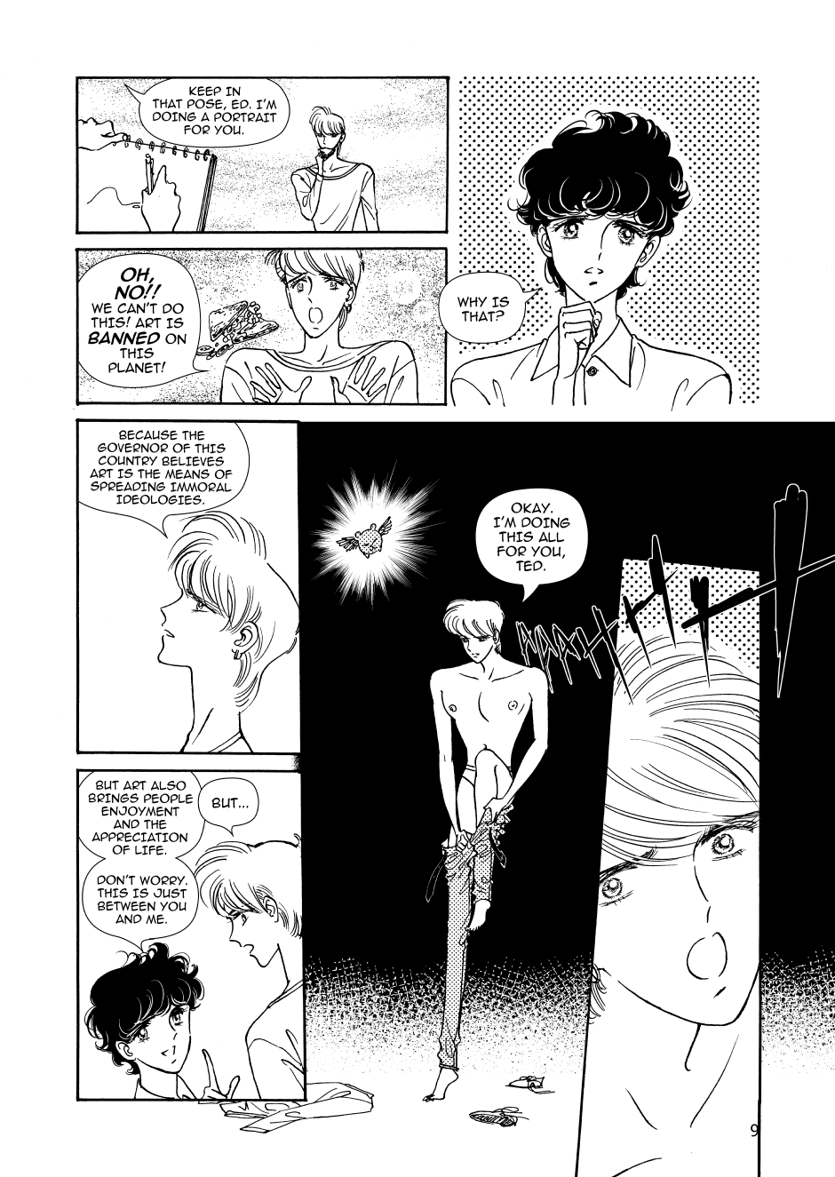 Ed takes Ted to Silver Dale to make up for the offence he made to Ted at the Galaxy Dancing Party. Being unknowledgeable of the law of the Lunar Repubic, Ted did a portrait of Ed, which incurs the punishment from the Student Union. Through all those sufferings and humiliation, the relationship between Ed and Ted solidifies and sublimes to a more intimate level.