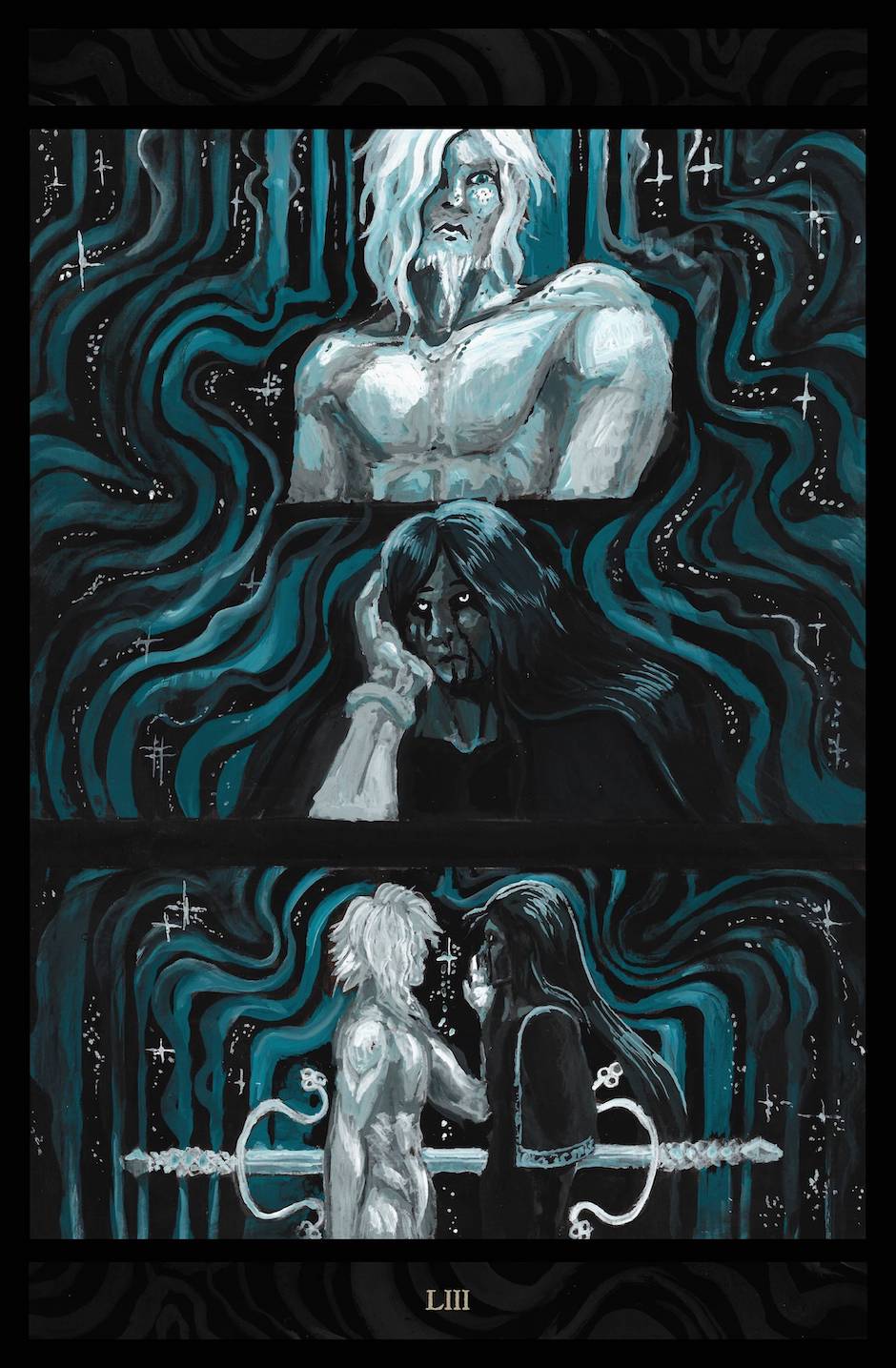 All art is painted traditionally on hardboard with gouache paints.