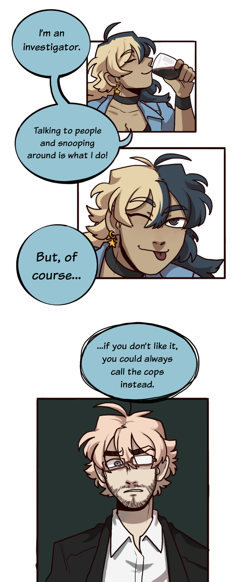 THE CULT THING centers around three unfriendly friends calling themselves private investigators as a cover to stick their noses where they don’t belong. Each with their own set of talents and unclear motivations, they ruffle far more feathers than they help along the way.