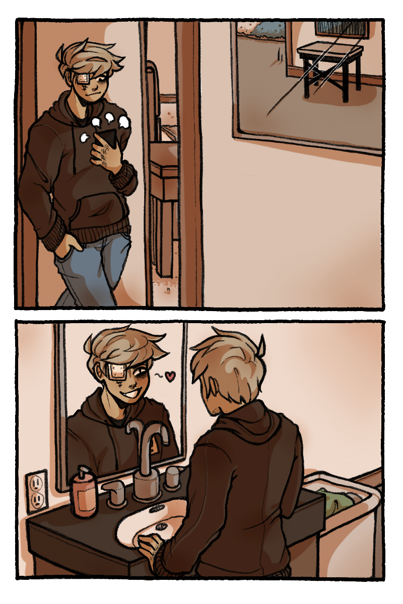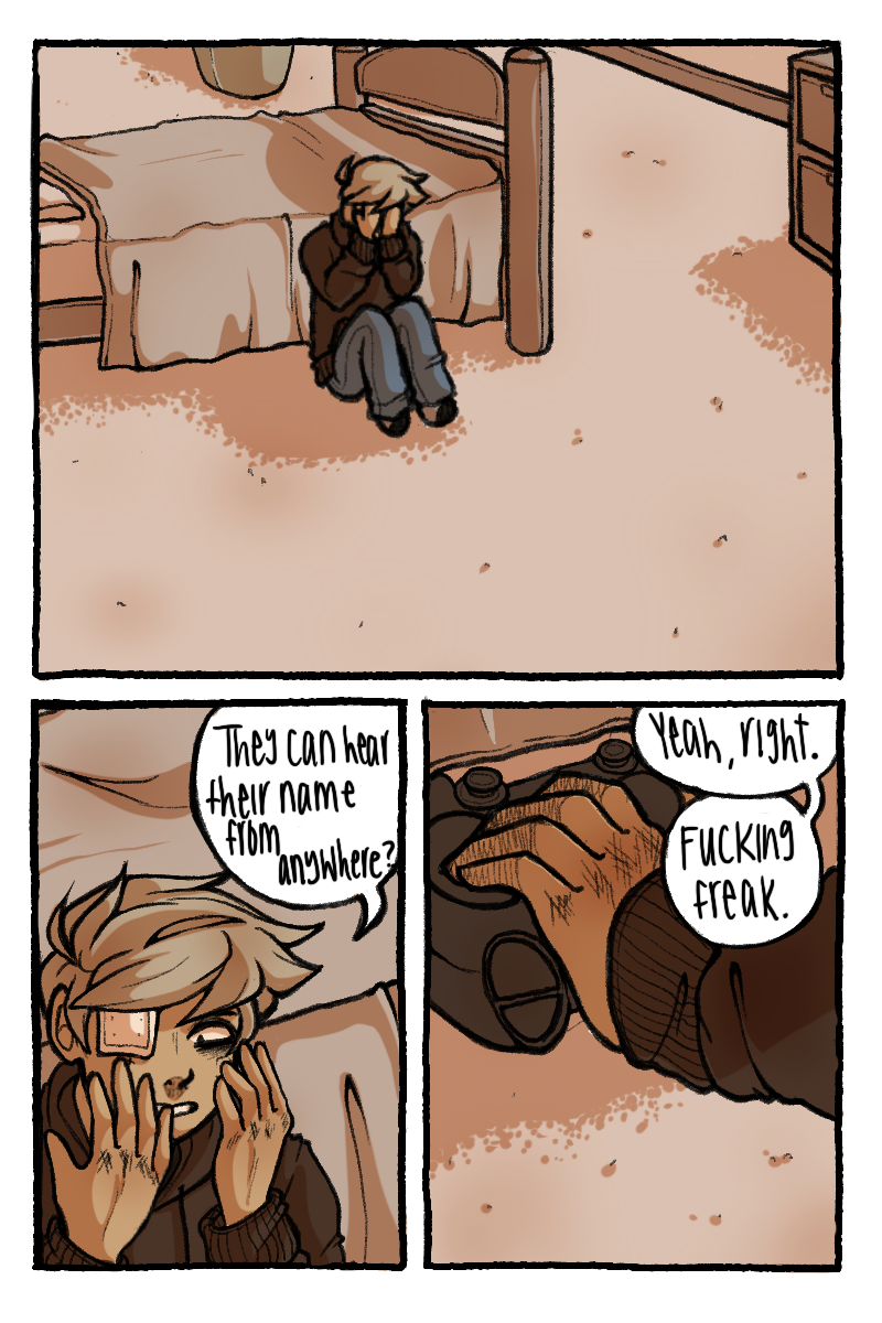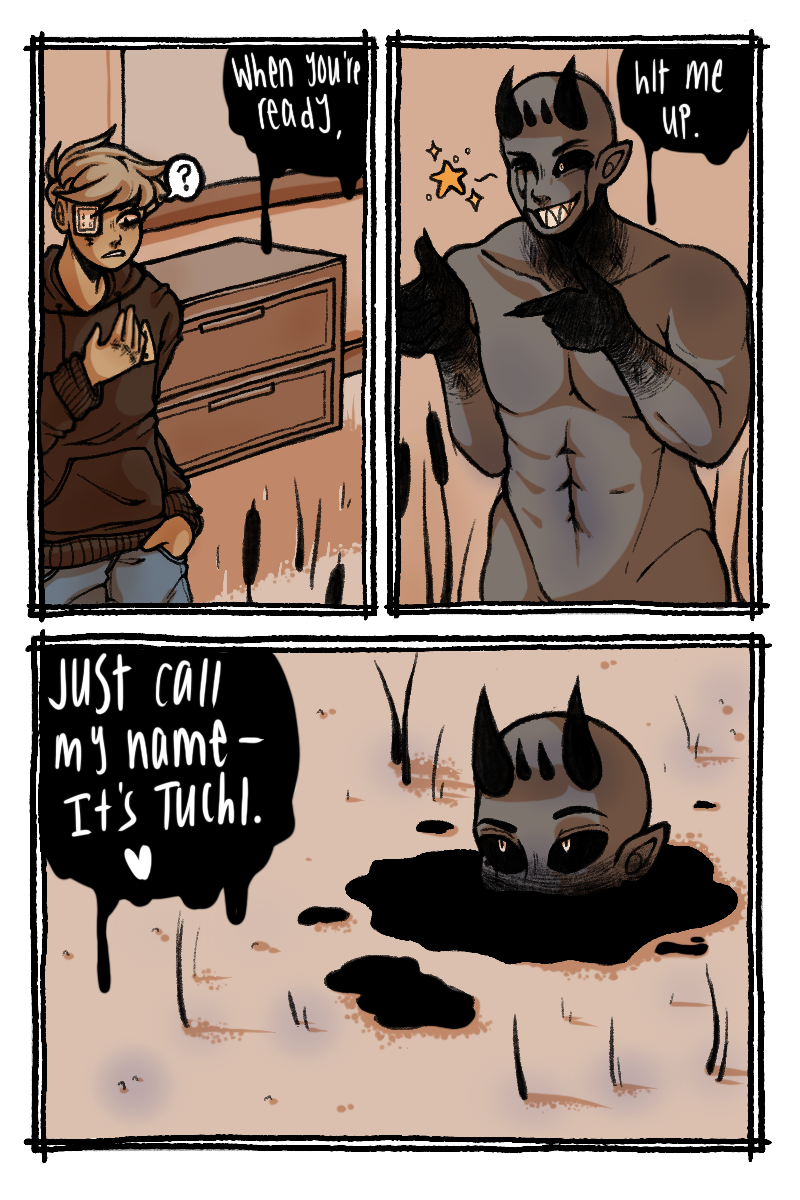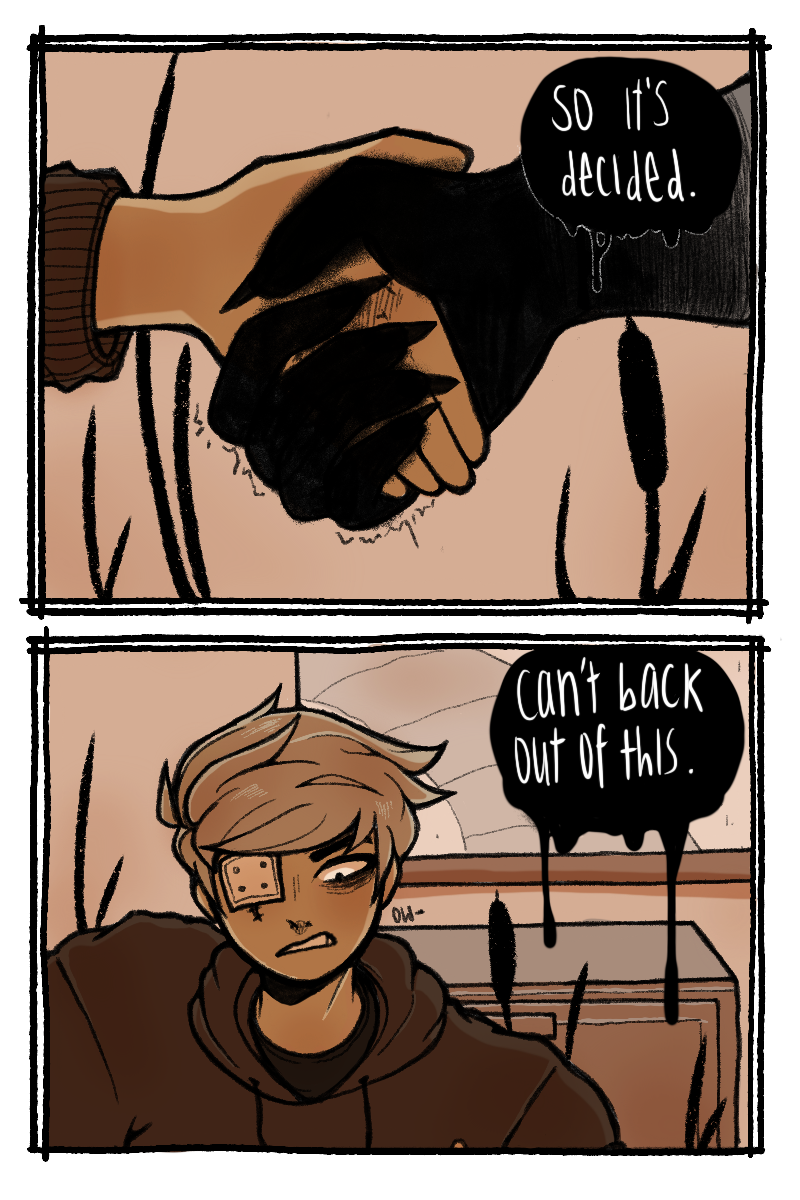 Sawyer was raised by his dads as more of a colleague than a child. With one dad being almost completely absent and his other having a bad grasp on any anger control, Sawyer quickly became a violent problem child. 15 years of acting out and a broken family photo led to the permanent loss of his eye in an accident. Unbeknownst to Sawyer, a god had been keeping an eye on him since his youth. This god offers to help Sawyer get revenge on his dad, but they probably don't only have good intentions.
