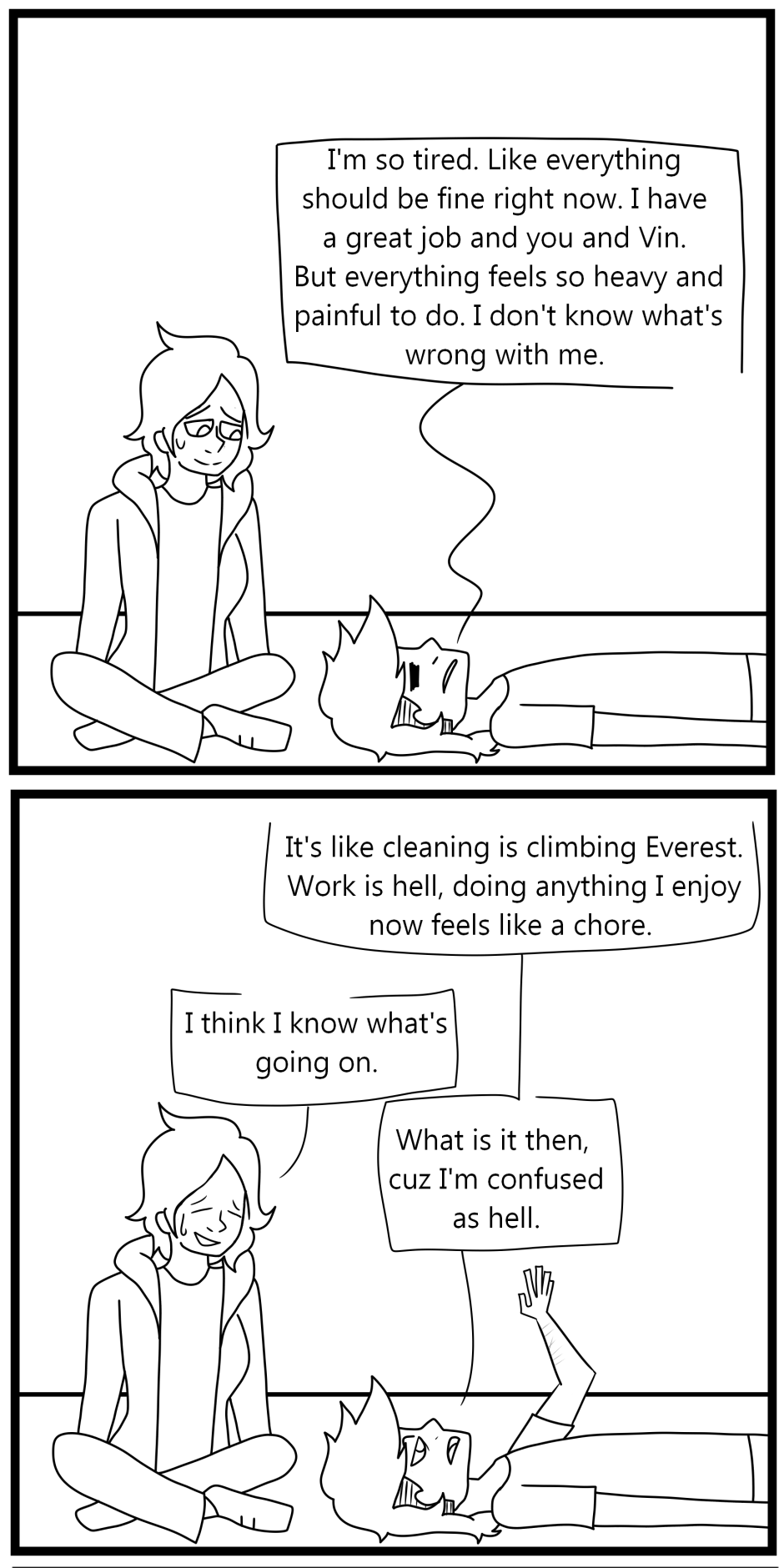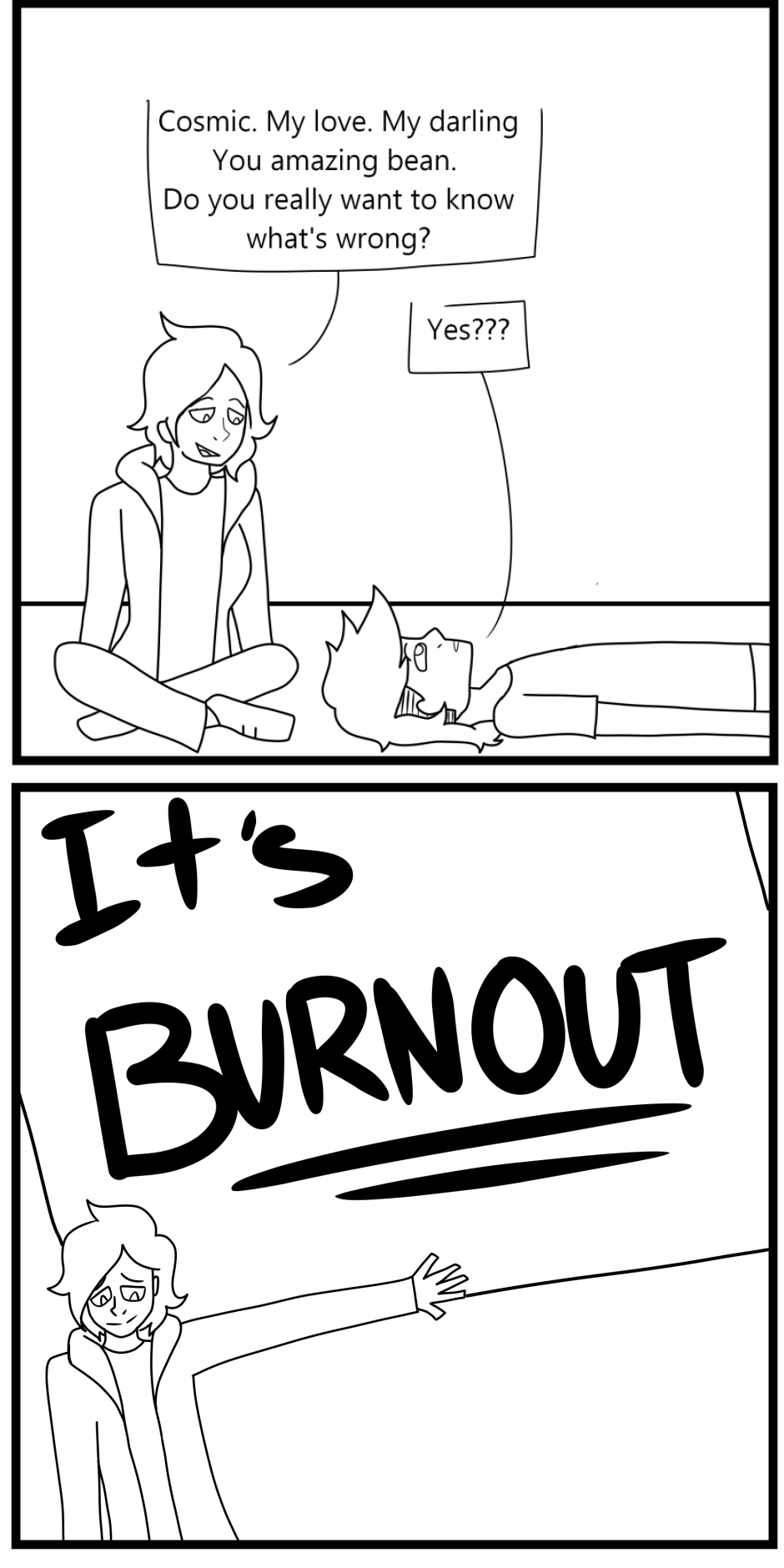 Schedule is officially, whenever I can get to it. Sorry. This comic is also passively about why I haven't been uploading, Have a cameo of my girlfriend Matchu. So yeah. Burnout sucks