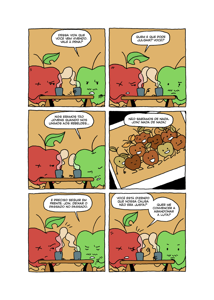 Esta é uma história sobre frutas. Frutas heroicas, comuns e covardes. E, para Jon, esta não é uma história sobre salvar a própria casca, mas uma história de vingança e redenção.
