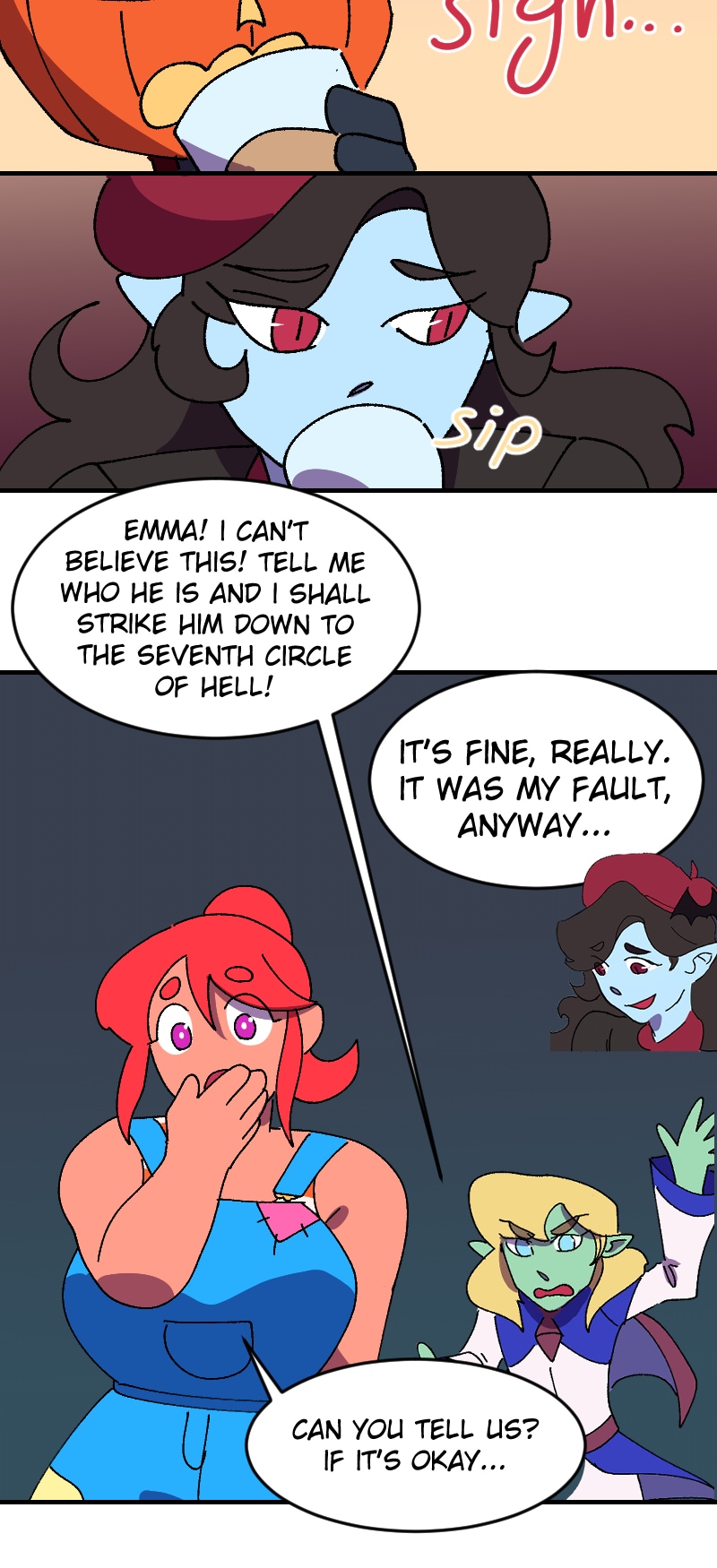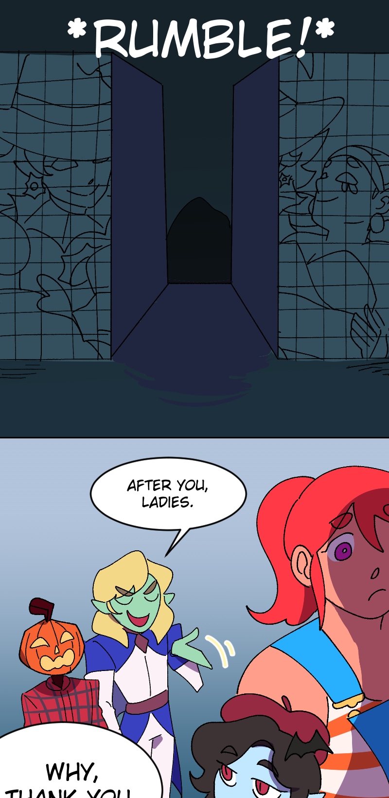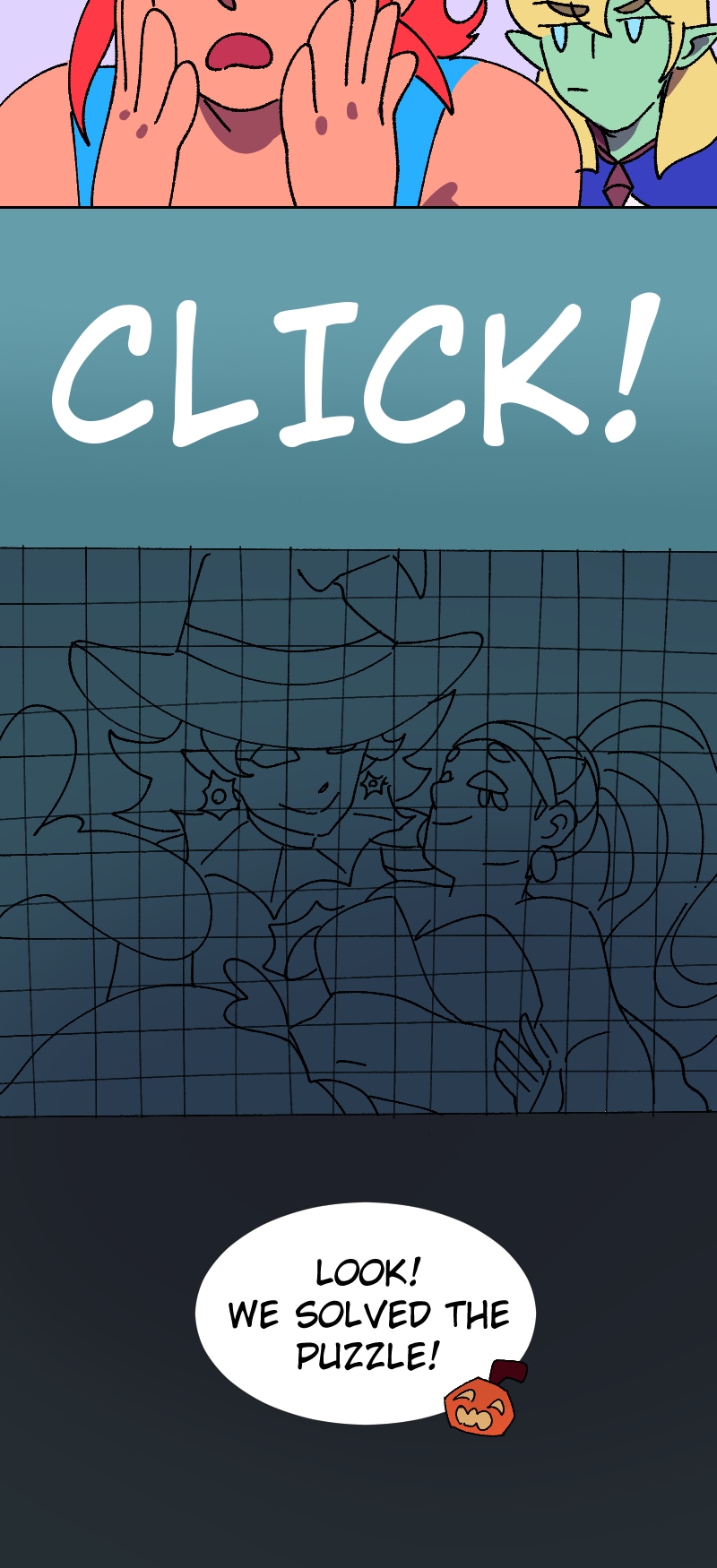 The friends hang out while they solve the labyrinth puzzle and tender secrets emerge. Art by Anonymous