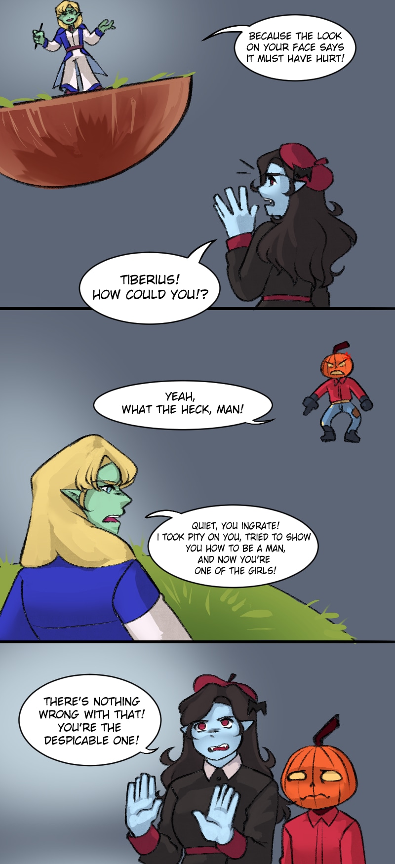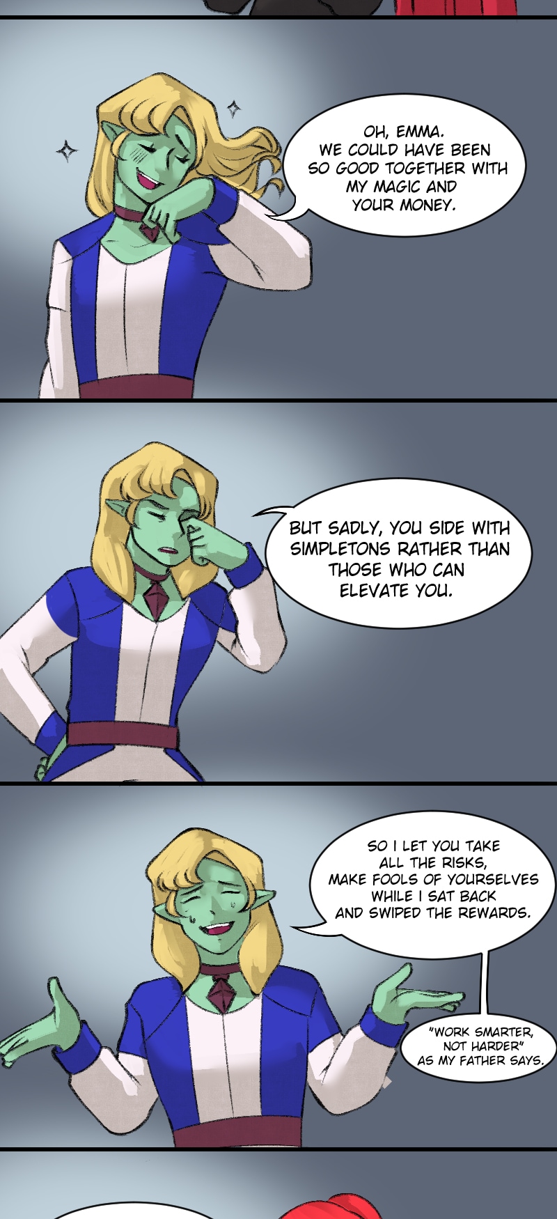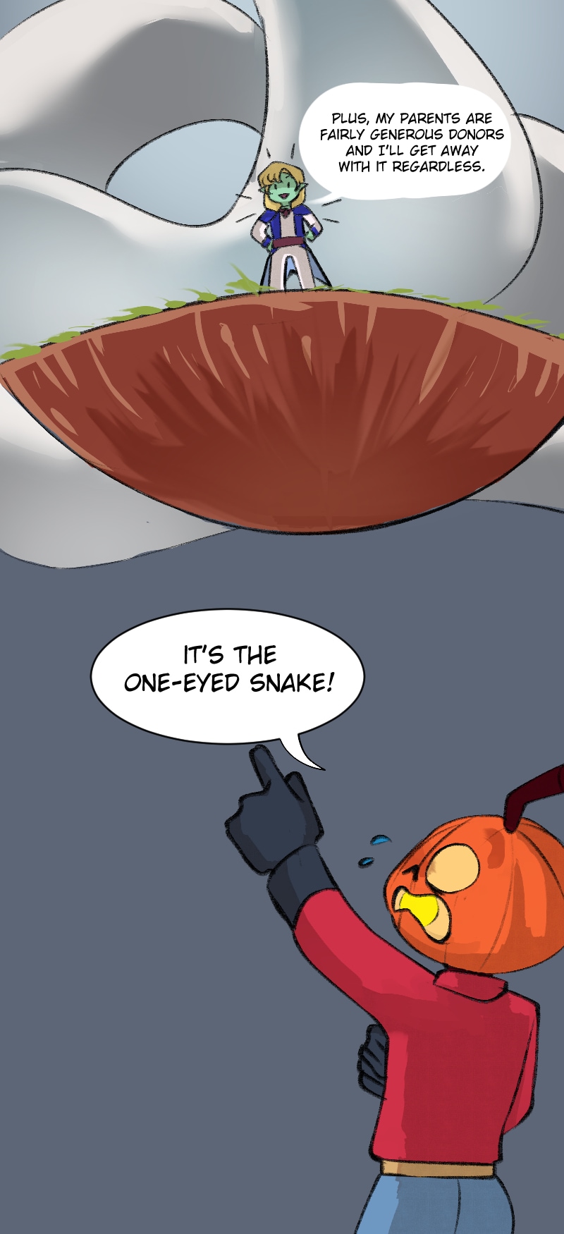 Deceit! The no-good Tiberius betrays Emma and her friends so he can take the treasure all to himself! But wait, what's that towering behind him?... Art by: Zer0Cookie Instagram: Zer0Cookie Twitter: Zer0Cookie Color: MiruYuyo Instagram: Miru.Yuyo Twitter: MiruYuyo