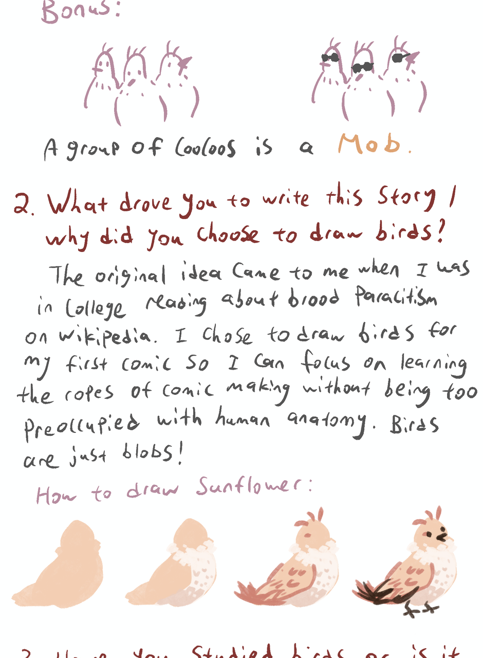Sunflower, a Coocoo bird raised by a family of Warblers, has always longed for a place where she belongs. Upon leaving the nest, her birth family comes to claim her as the heir to East Side Coocoos, the greatest bird mafia in the city.