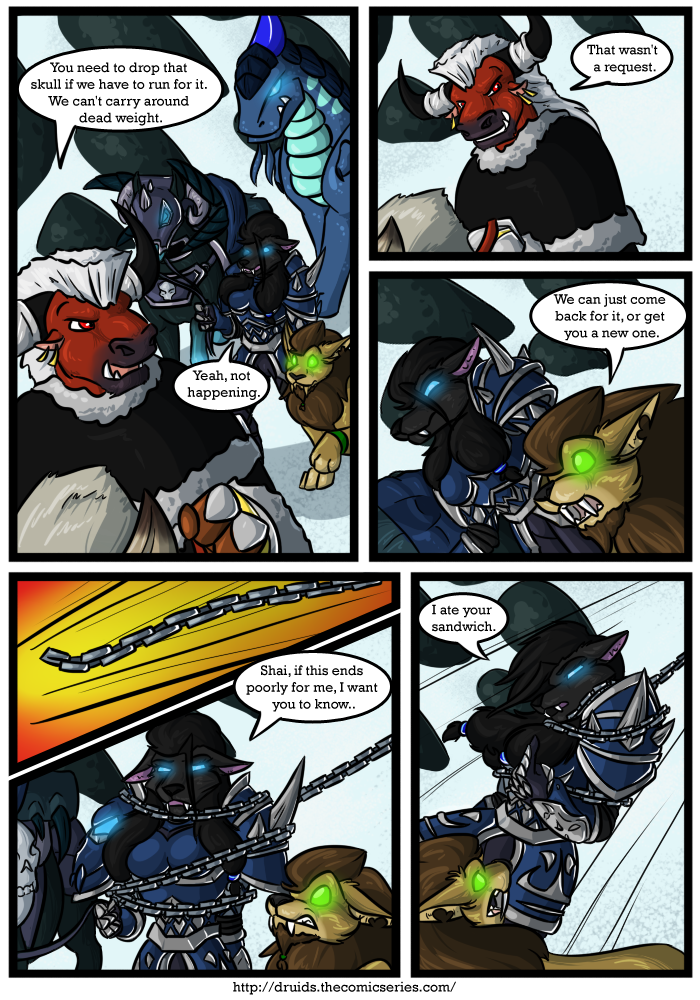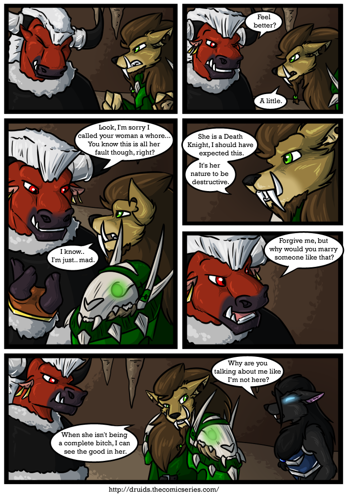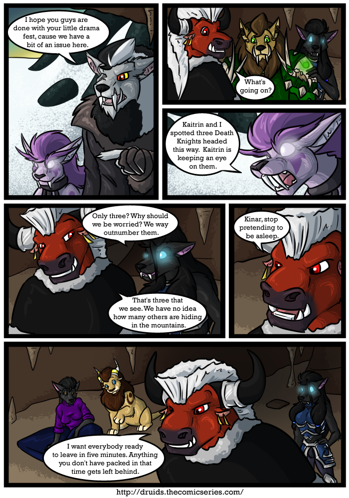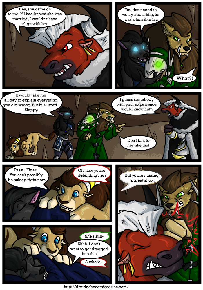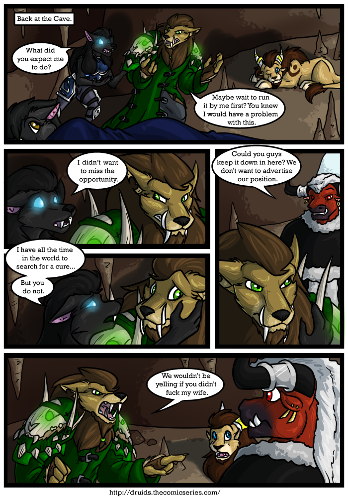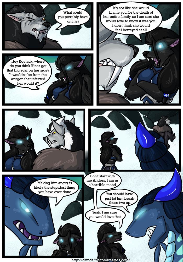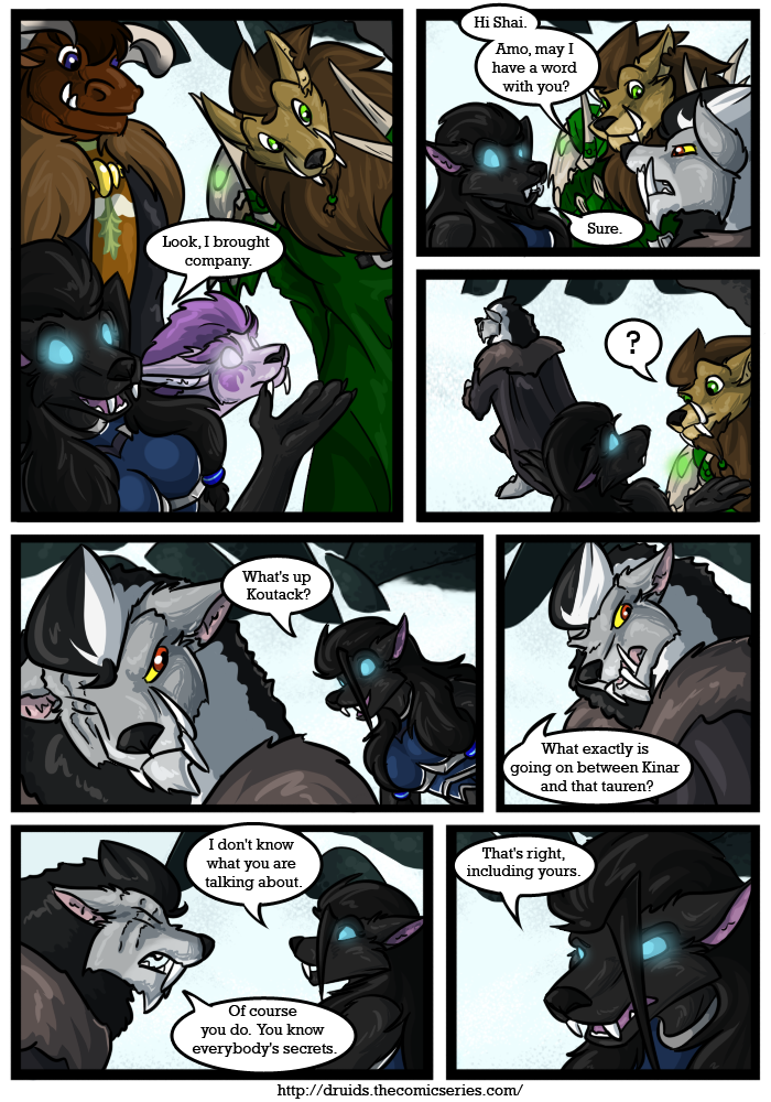 Druids is a fully colored fantasy / adventure web comic that explores unusual relationship between Kinar and Serid, two druids on the opposite side of a war. This is a Furry web comic based on the World of Warcraft setting and has been cleaned up for all audiences.