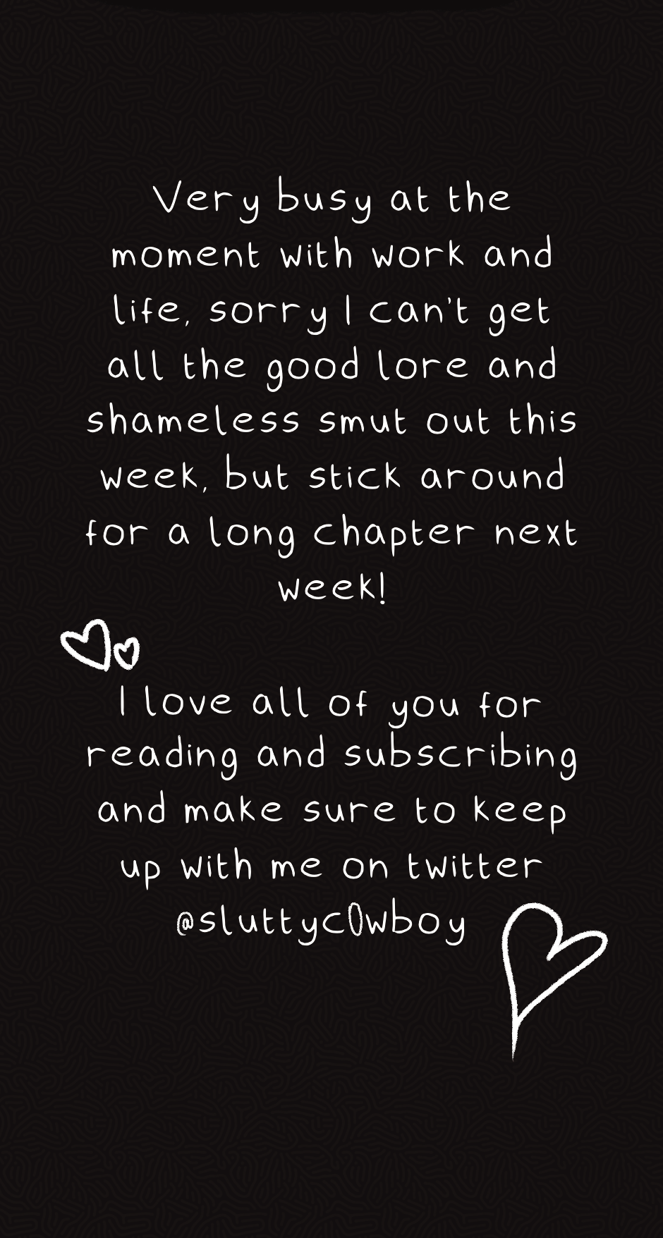 Even though I know there isn't that many of you I am still very grateful and want to be transparent, It's finals season and when I'm done studying for the day the last thing I want to think of is more work, and whilst I love making comics, it's also a big commitment. As viewers I hope you can try to empathise. Expect big things for next week and subscribe to receive updates. Thank you :)