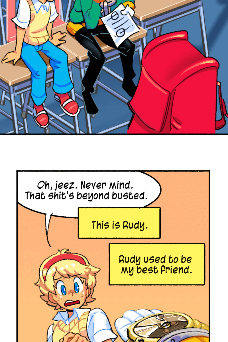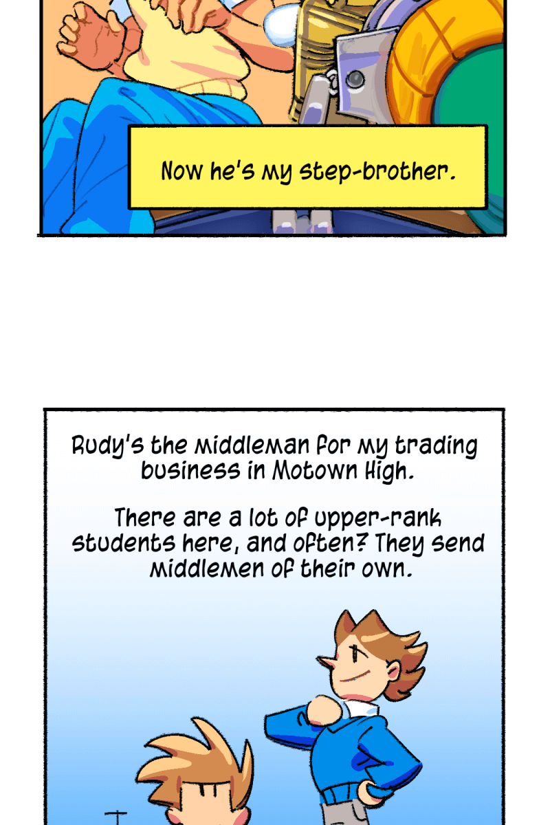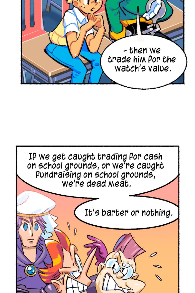 While other people have fantastical adventures in and out of high-school, the 'normal' student Conner Jones runs a bartering system to get his hands on cool gear and hopefully find his true calling in life. Conner views his superpowered classmates as an intimidating high standard to reach up to - but the feeling may be mutual!
