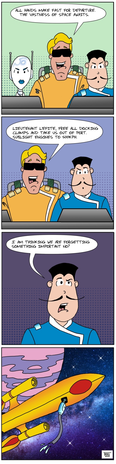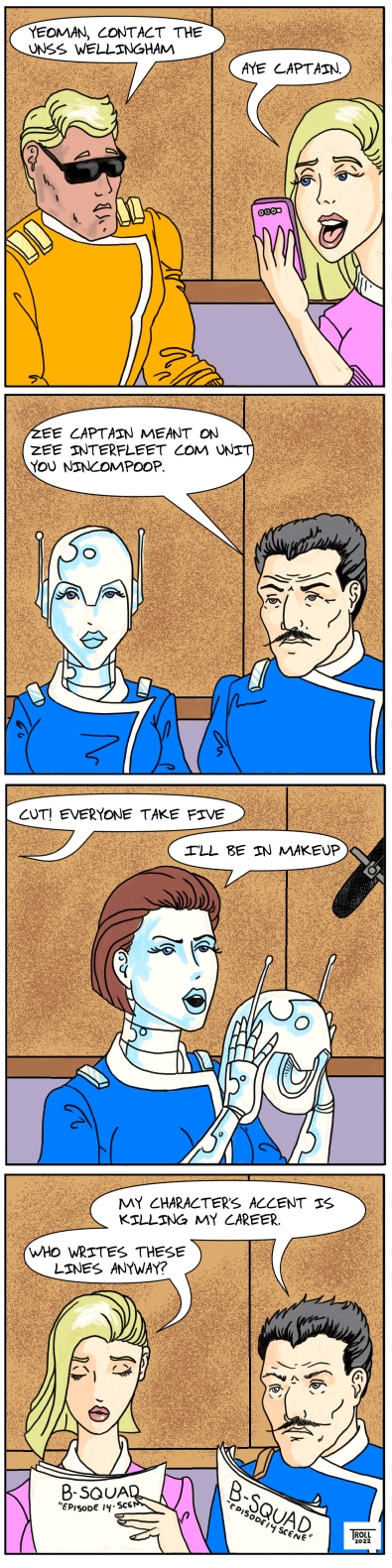 Once upon a time there was a television show chronicling the misadventures of a group of intrepid space explorers. These are not the top of the line heroes mind you. These are the guys that just couldn’t make the cut for that. This comic is about that show, its cast and crew and even what happens behind the scenes. Welcome to the adventures of B-squad.