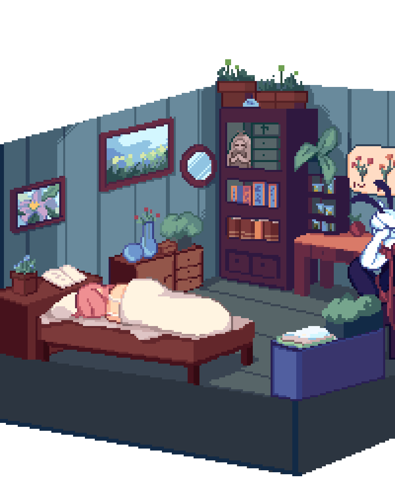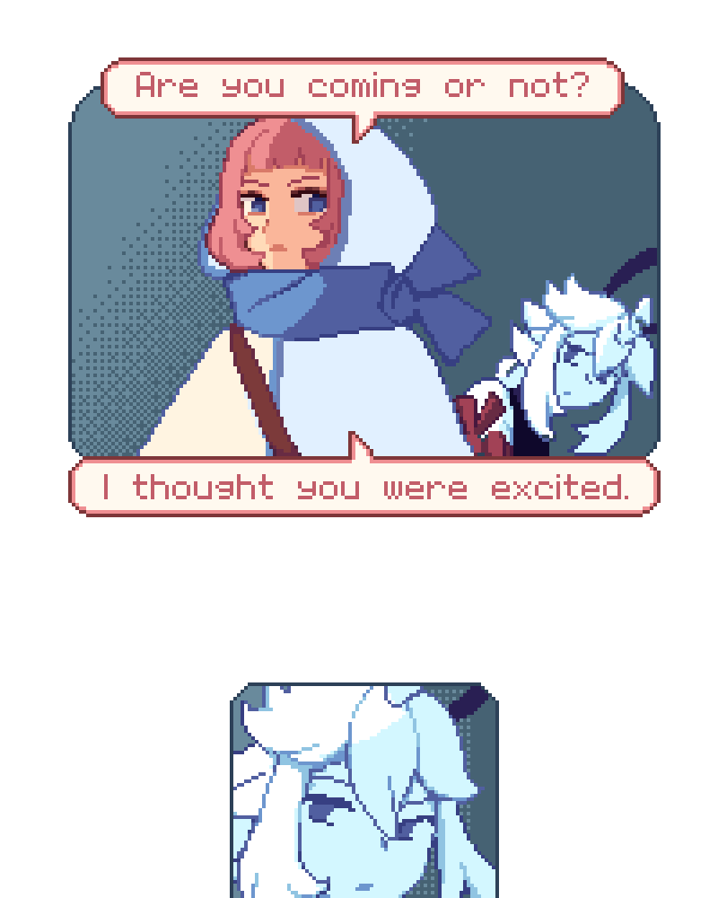 A devout, seemingly ordinary, and a shifter, expected to fill a role, find out they have a lot more in common than they first thought. With their newfound friendship, they will do anything it takes to leave the island they are confined to, even if it takes the summoning of a God to do so. [Pixel-art] [Slowburn] [SHORT updates]