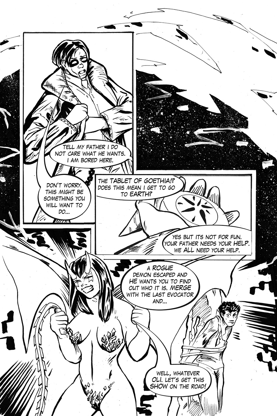 Set in a small town, the last Evocator (human that can summon demons), must stop a renegade demon from creating his own hell. And the only one to help him his the Devil's own daughter.