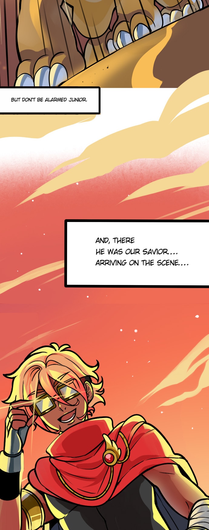 A Folktale being told by a mysterious figure about a hero that saved the world, but as the story is being told this narrator seems to have a very passive aggressive tone. What's his end game of telling this story?
