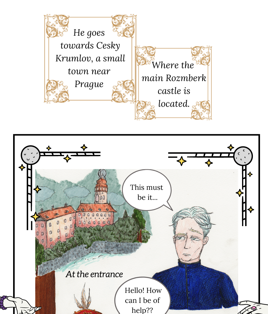 Drawn in traditional art, it tells the story of the Rozmberk heiress and the Cesky Krumlov castle where the living and the dead mingle together. A story of dresses, war, politics and death, with a supranatural twist.
