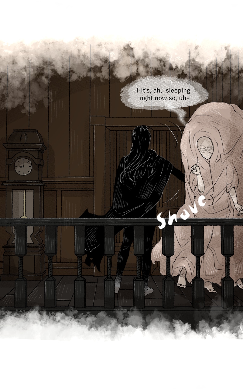 “The Abomination cowered in the presence of the Guardian, who only reined in his temper enough to refrain from striking that fool, as he normally would. A more pressing matter weighed on his mind; the Child could not be allowed to stay a moment longer, lest more tenants of the House take unwanted notice.”
