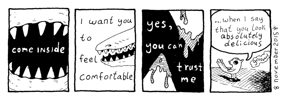 This was a fun one to draw. Just followed the images/text, and didn't know where it was going until I got to the last panel.
