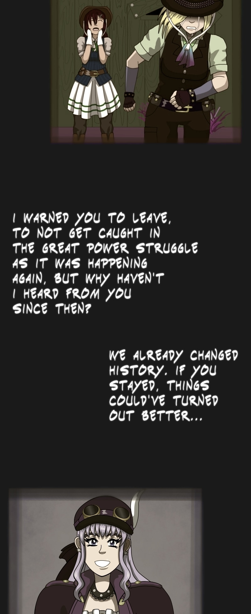 The rival caused an incident that left a group of people stranded in 1887, under her rule, in a bizarre anachronistic timeline just as "The Great Power Struggle" is about to happen again! Some of the stranded people are just trying to survive while they wait for space-time to be restored, but others have their eyes on joining one of these factions and see opportunities for heroism, fame, wealth or power ahead!