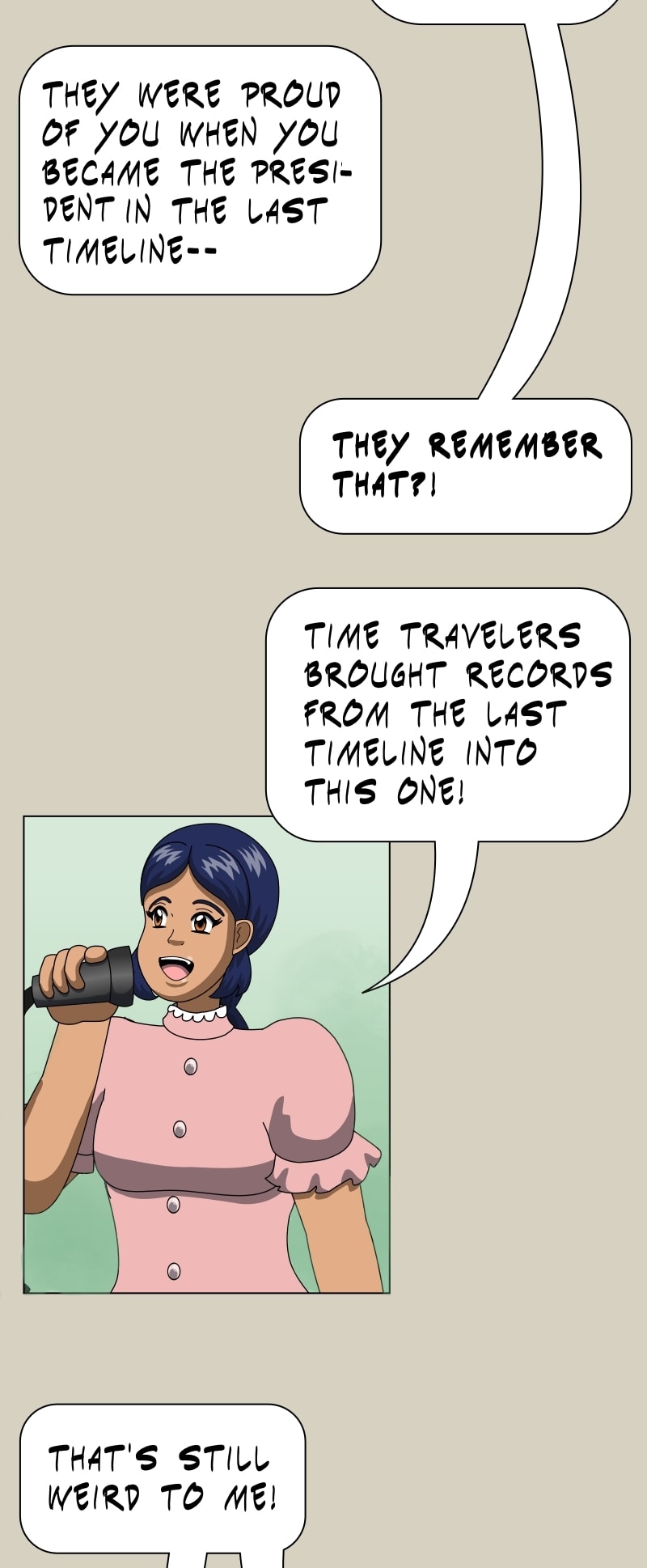 She was a time traveler who left the Academy for Time Travel before she graduated, and is now a fugitive. She believed their rules were too limiting, and time travel can be used to set things right.