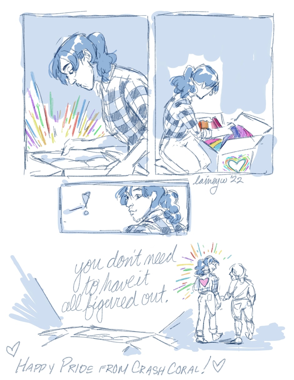 Happy pride to all the late bloomers like me (Lainey) and everybody who doesn't have words to describe themselves yet, or just don't fit with one flag. You're still part of the community :)