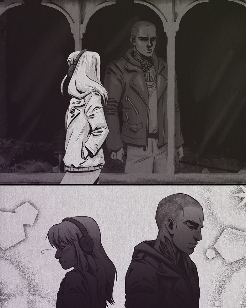 Спочатку (як вперше відкрила комікс) перші 5 сторінок настільки мене збивали з пантелику, що я десь хвилин 5 намагалась цикати на них, бо думала, що це розділи, але тепер дочитала майже до кінця і ААААААААААА іт мейкс соу мач сенс!