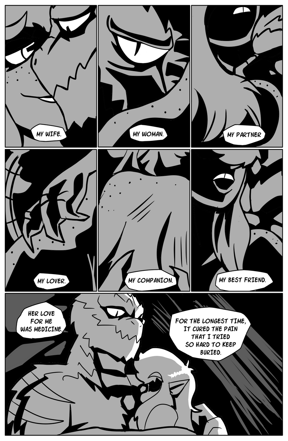 The reptilian Sislo accompanies his Fae wife, Tetheril, on her journey for an elusive flower. Upon exiting their isolated home, the couple enter a world that has changed around them. Despite their strange endeavor, the couple finds comfort in their bond. However, even that is contested when the shadows of Sislo's past threatens to consume them both.