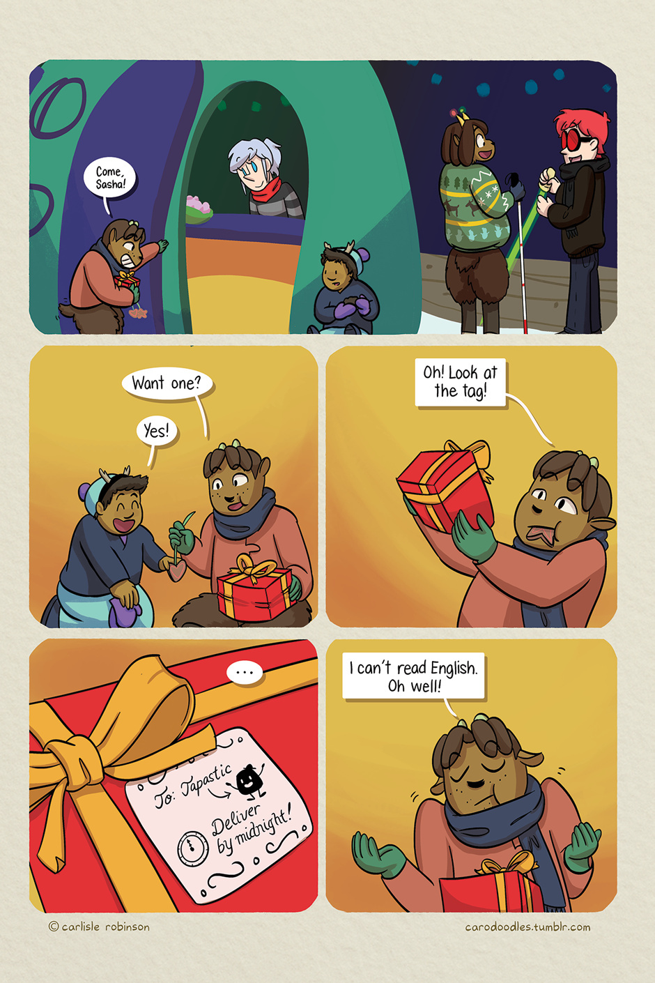 And be sure to follow the links, in each episode description, back to the original artist's comic series for more of their comics. Thank you for following our crazy holiday adventure.