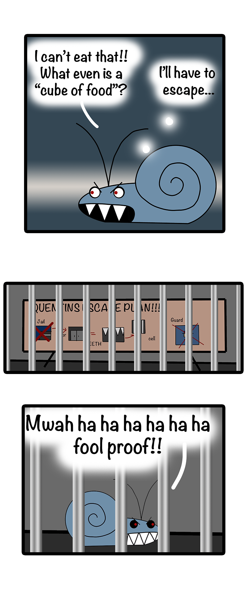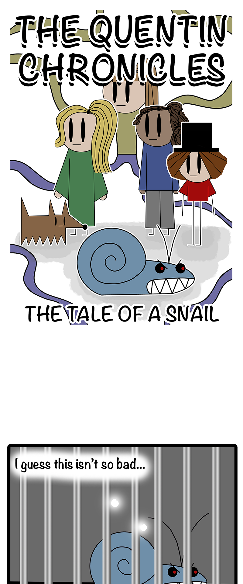 If you were a snail known for your kindness and an evil wizard burnt down your house what would you do? That's right! You'd be granted the magical power of TEETH and take revenge on the wizard I wrote the first draft of this when I was 12 and bored in class to amuse my friends, several years and layers of lore later and Quentin has been digitally remastered in full colour and now on webtoon! because I think as many people should be subjected to this awful little comic as possible ^^