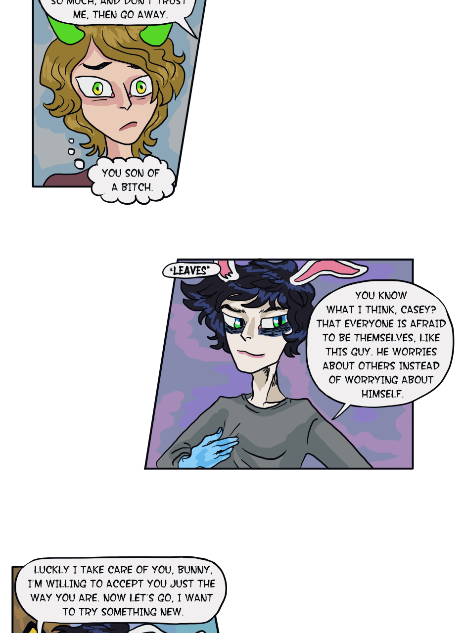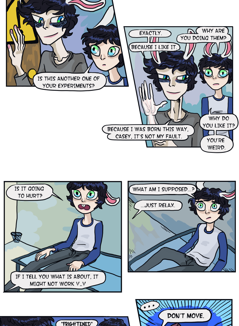 The following story is an introduction to Casey's unfortunate life he didn't choose, as well as a small glimpse into the disturbing mind of the mad scientist, Heilyn. Then there is the unexpected visit of the scumbag and pervert Nikita. And last but not least, the peculiar relationship between these two childhood friends, who had hard lives and decided to run away together and manage on their own.