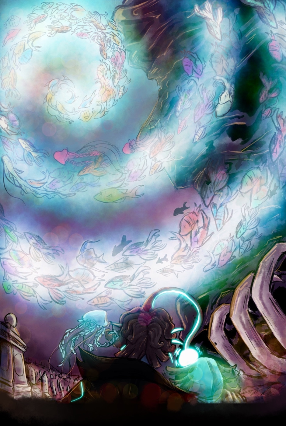 When Flotsam goes down to the harbour to crab, he is pulled into the sea by the current. Upon awakening he finds himself as a ghost in a underwater cemetery and is greeted by the grave keeper working there….