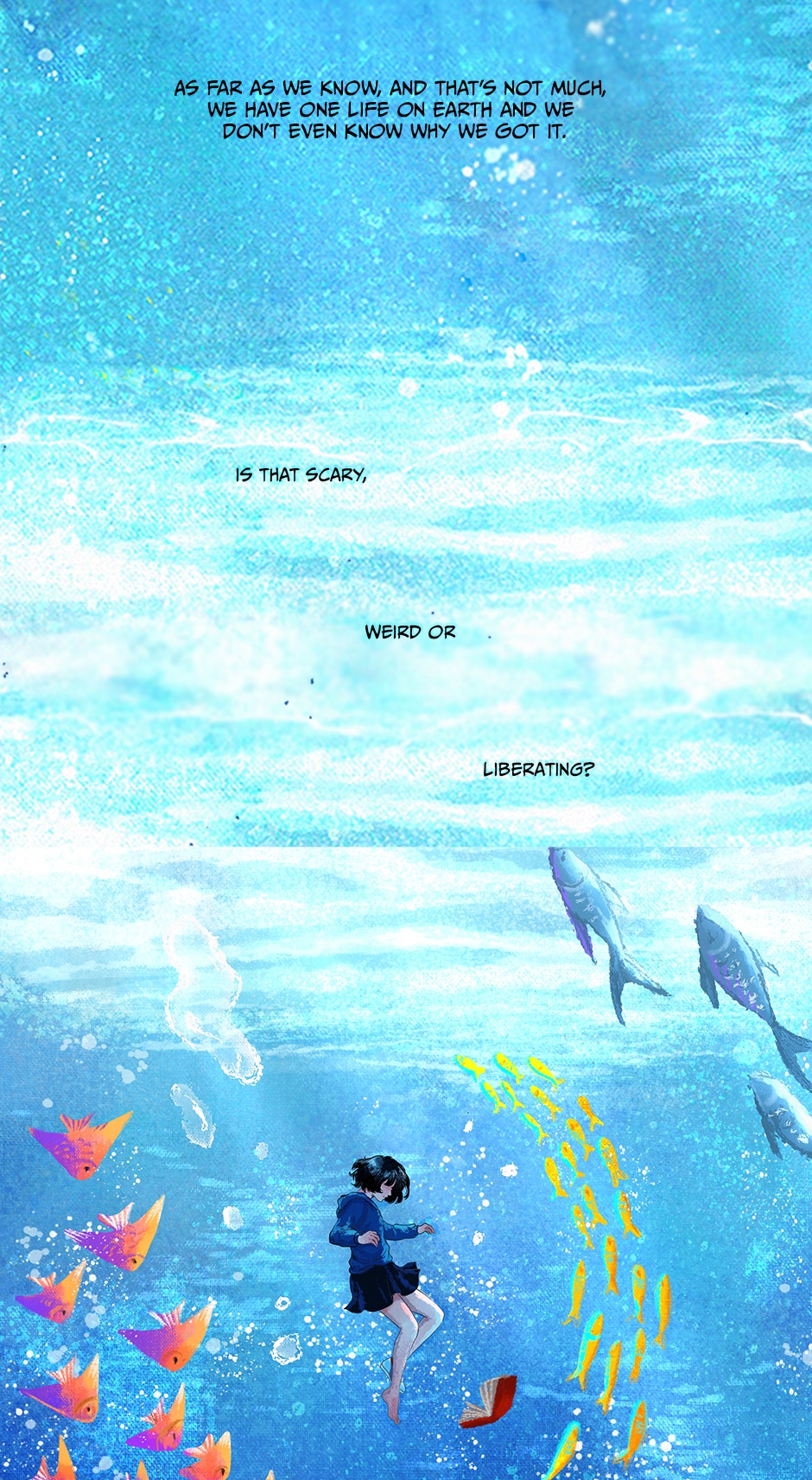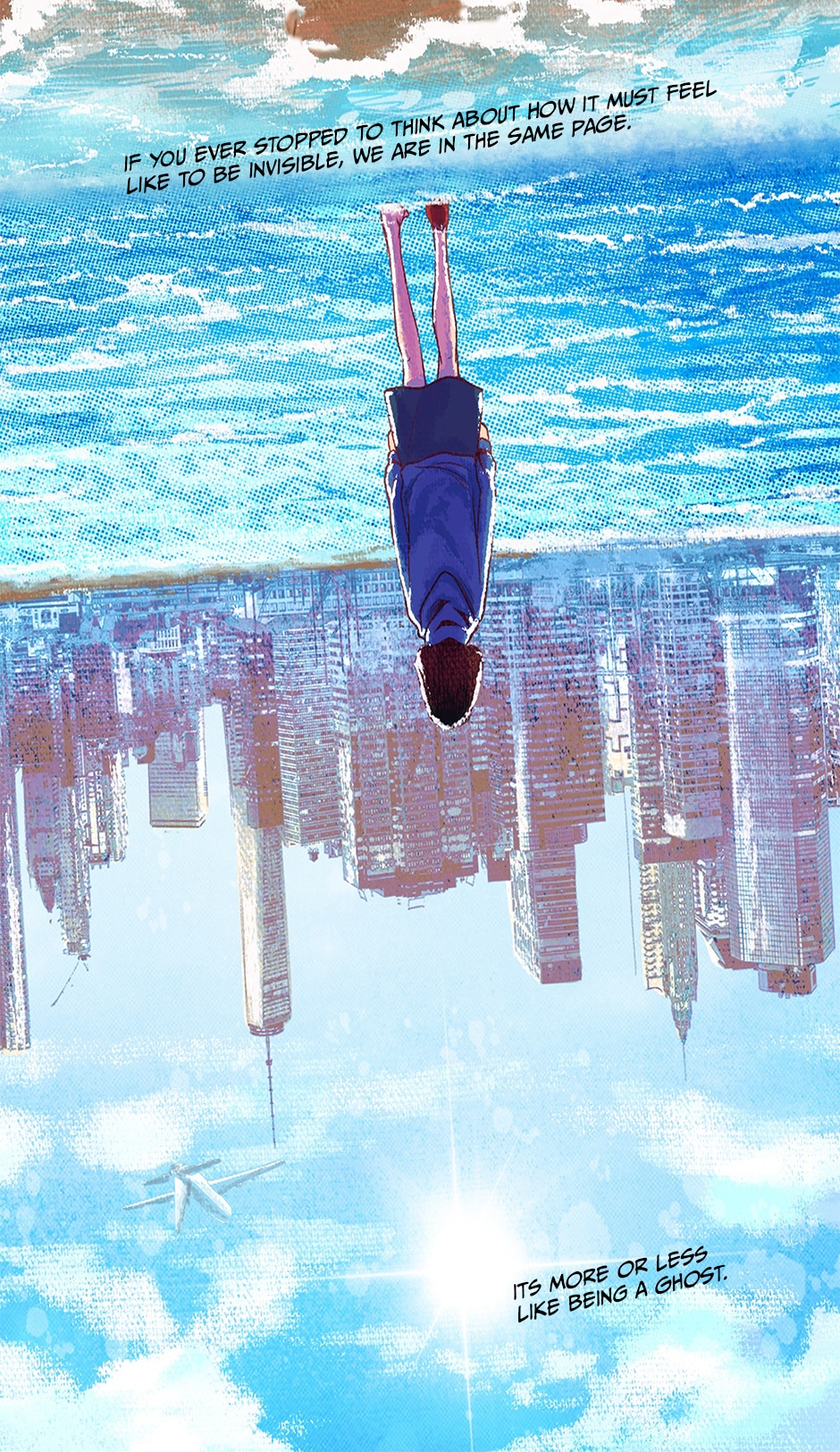 This is the story LOU. A girl who died on an airplane crash on her way to what she believed to be the trip of her life. Alone “on the other side” now as a ghost, she starts to search for a purpose. She then decides to look for someone alive who is reading the same book she was reading when her life was interrupted.