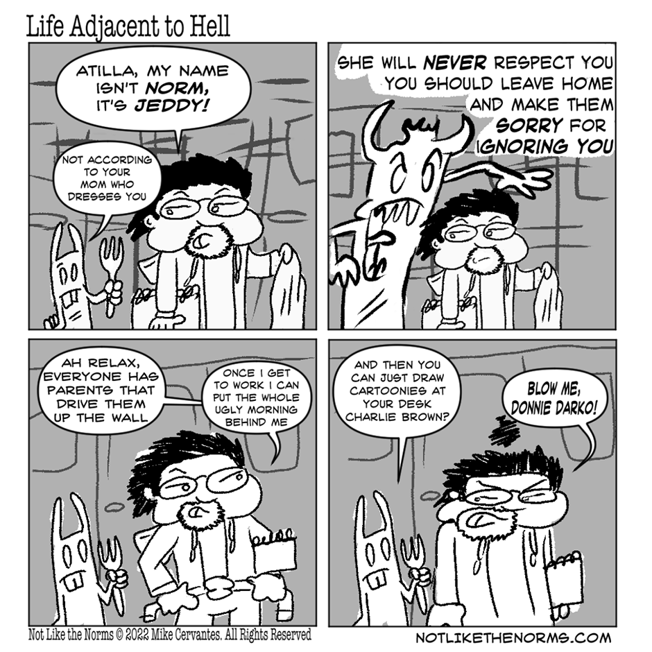 Norm Ynaryck (or Jeddy to his friends), struggles with neurodivergence, depression, and the inability to fit in with others, filtered through stories of his past or concoctions of his fantasies. A semi-autobiographical ongoing webcomic by Mike Cervantes.
