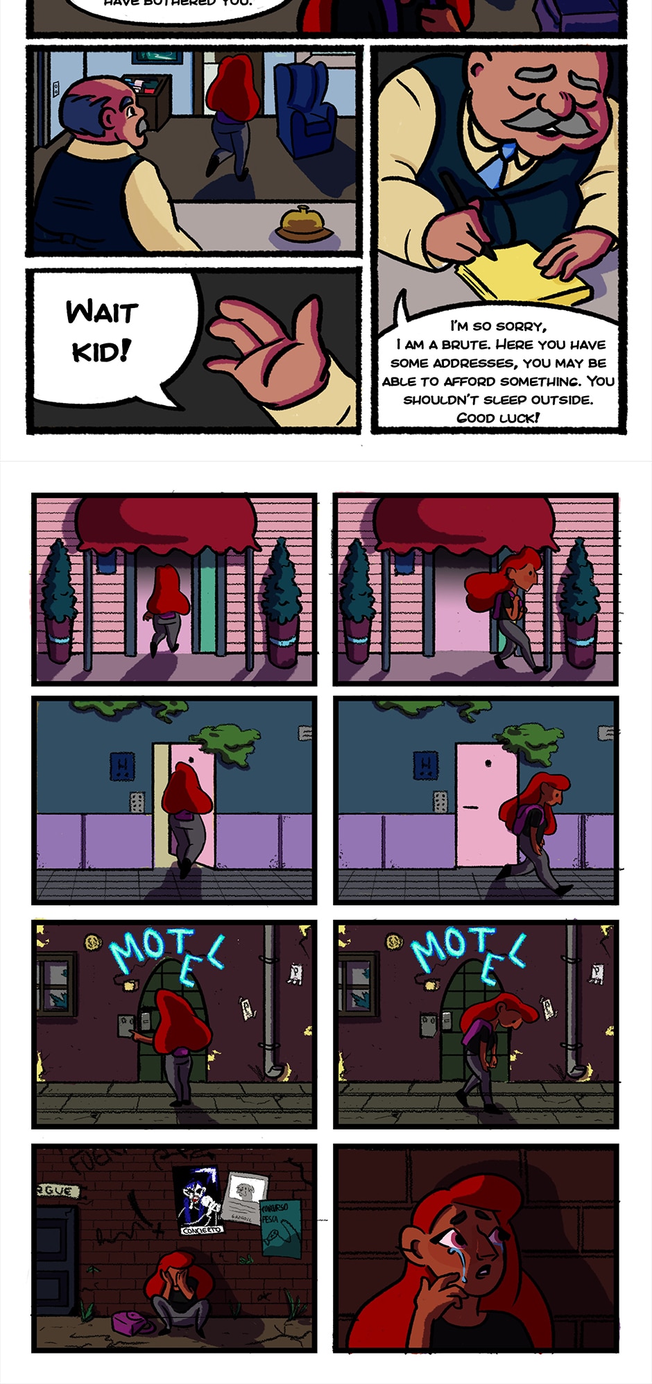 Nadine has arrived at her destination, and she is looking for a place to stay. Unfortunately, it won't be easy.