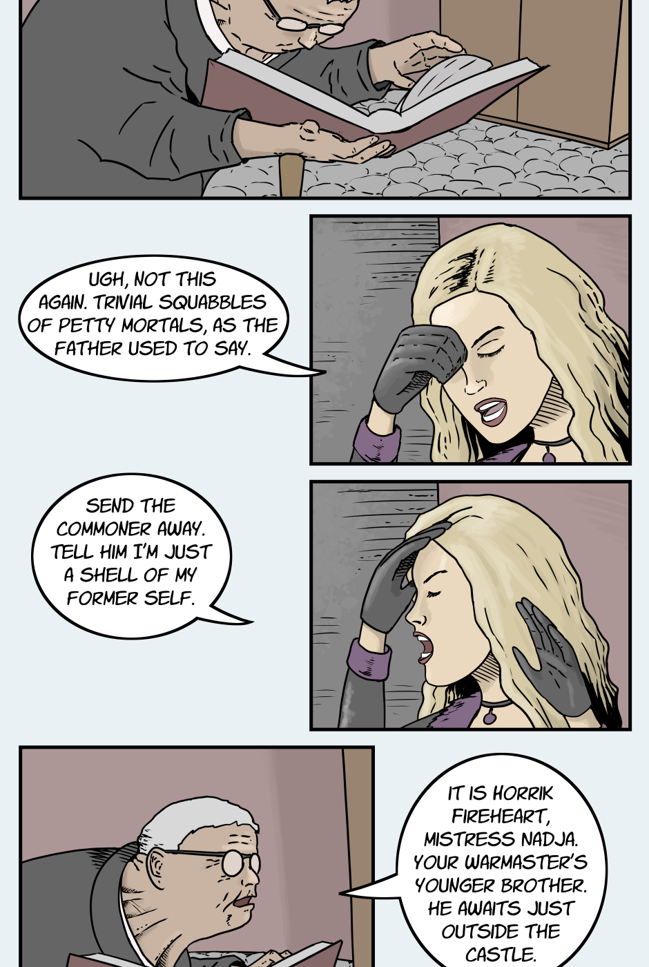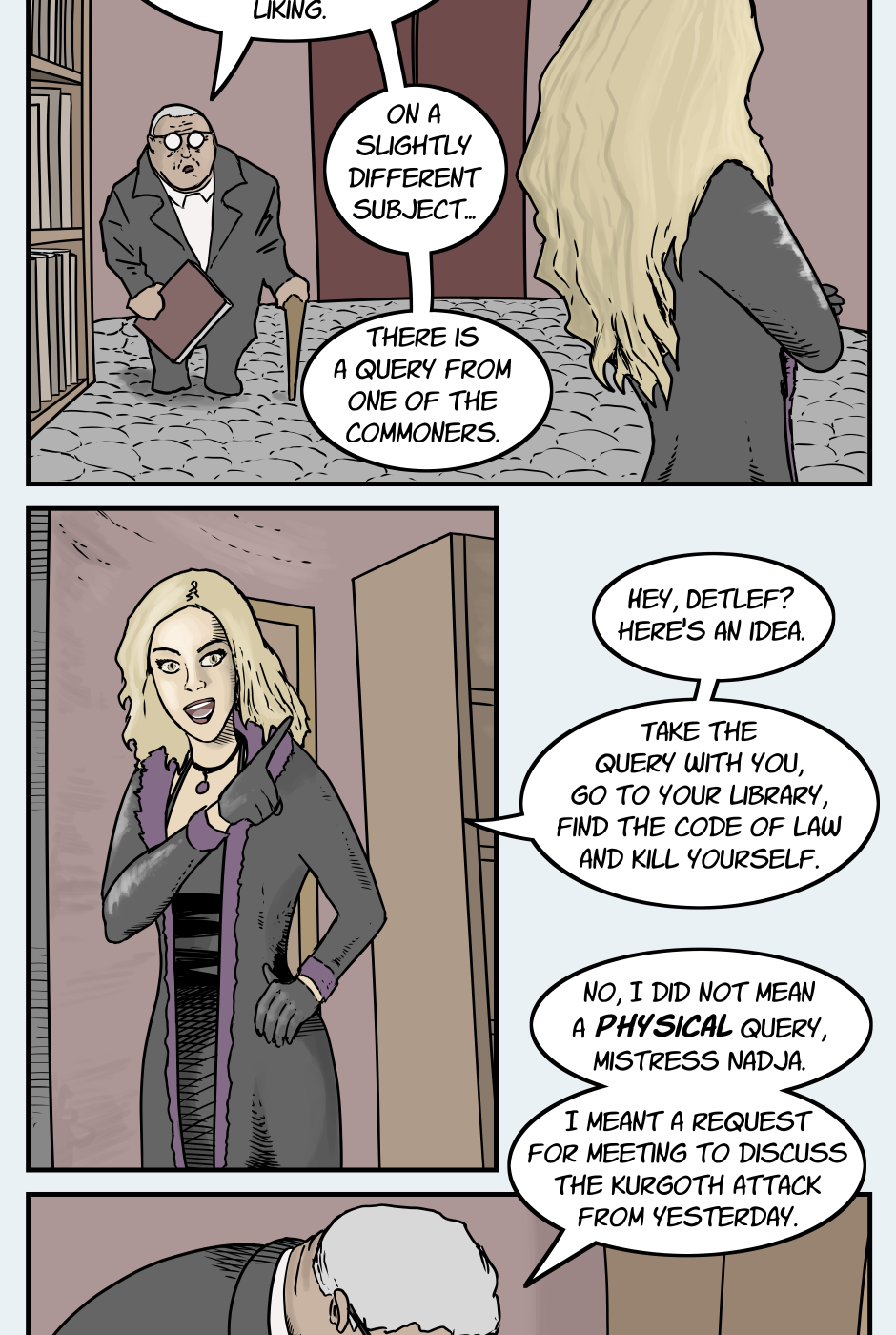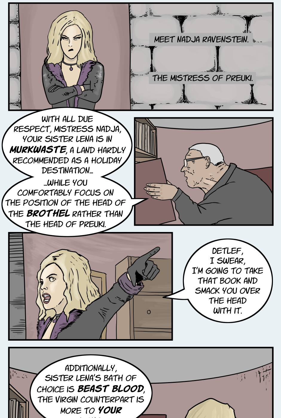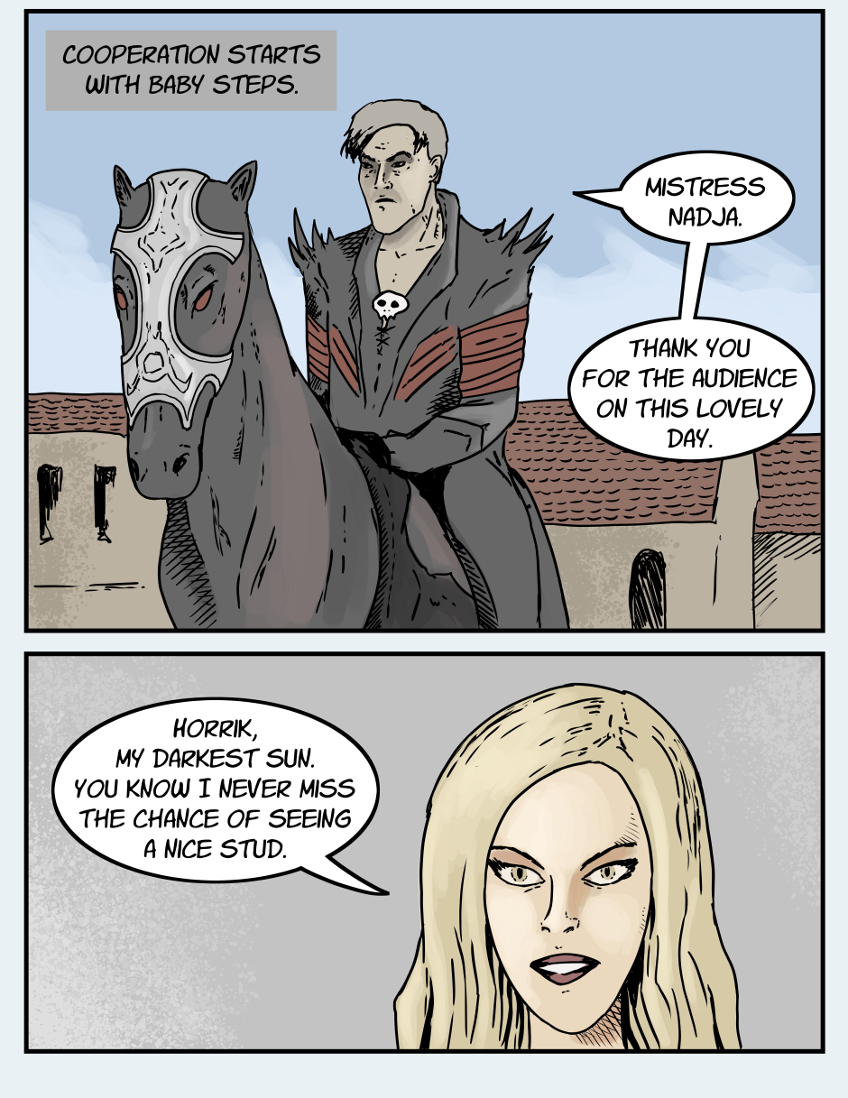 Another episode, another introduction. I trust it is not too overwhelming. Nadja Ravenstein will be a big part of this story. Further episodes will feature even more new faces. I suppose that is the nature of a comic focused on a world or society rather than a single protagonist.