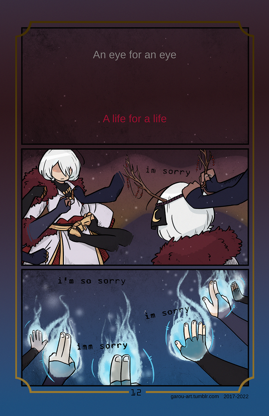 Text reads "An eye for an eye. A life for a life."